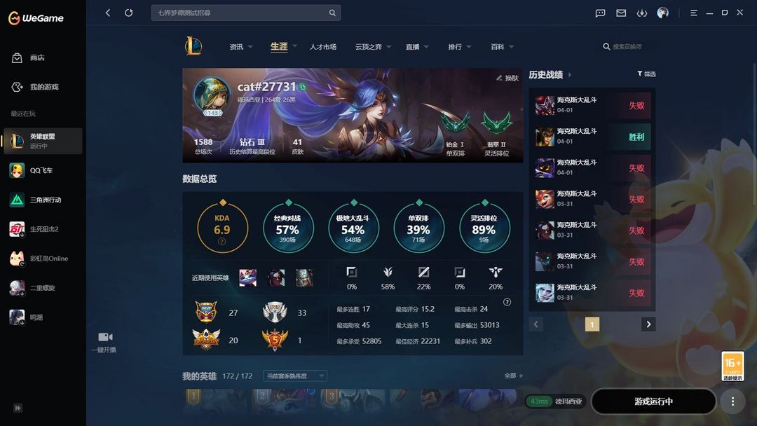 游戏区服:英雄联盟-联盟五区-德玛西亚