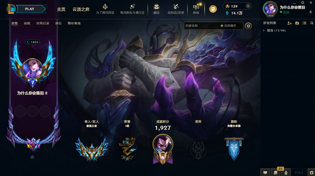 游戏区服:英雄联盟-联盟五区-德玛西亚