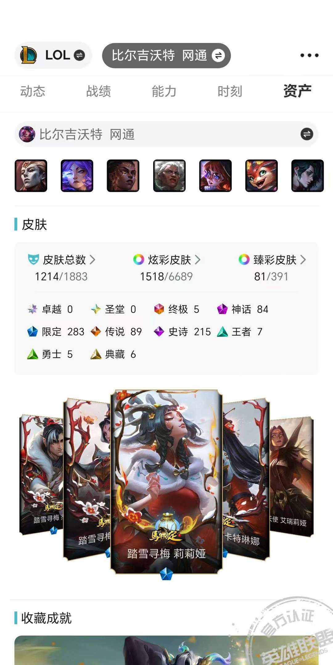 装备描述:全英雄,9500皮肤。至臻全套,全海克斯,六色龙瞎。全年限,全周年。