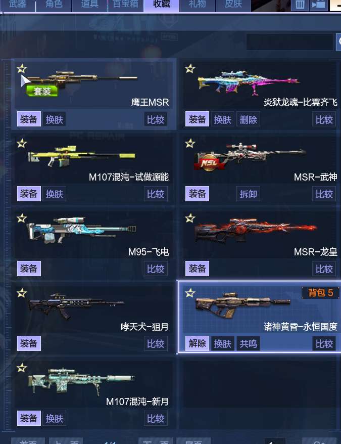 装备描述:天命渊瞳之戒 超梦晶体之戒 血泊 梦蝶幻戒 天穹裁决者 二级百宝箱 天王 海王 奇变步狙 朱雀原神之怒 天启左轮 冰神 纪元 雷霆999