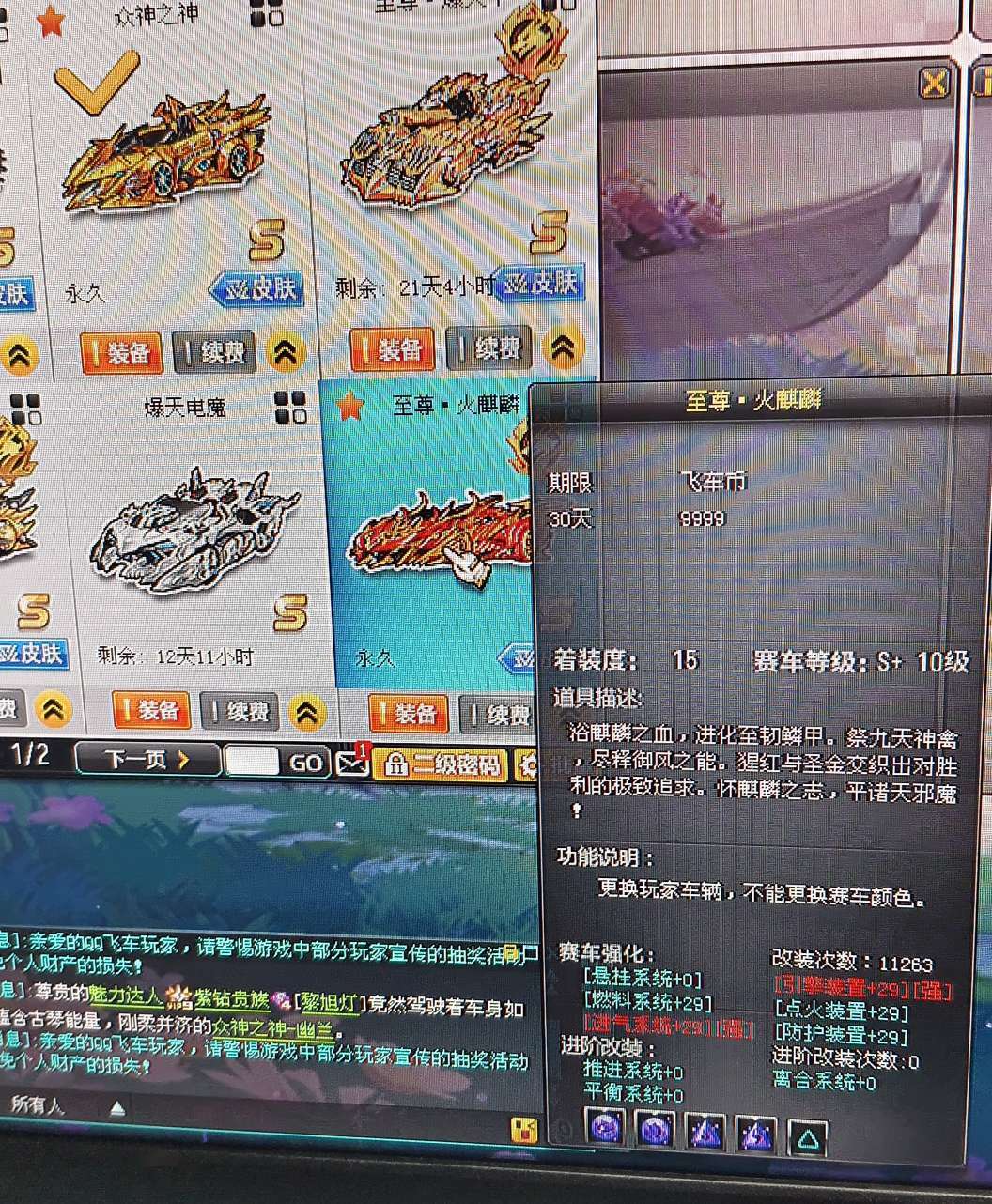 装备描述:至尊火麒麟,众神之神幽兰,镇海之戟,有几个t2,宠物强化9,有紫钻