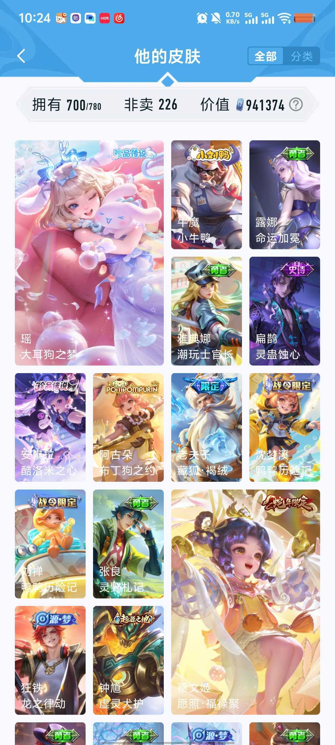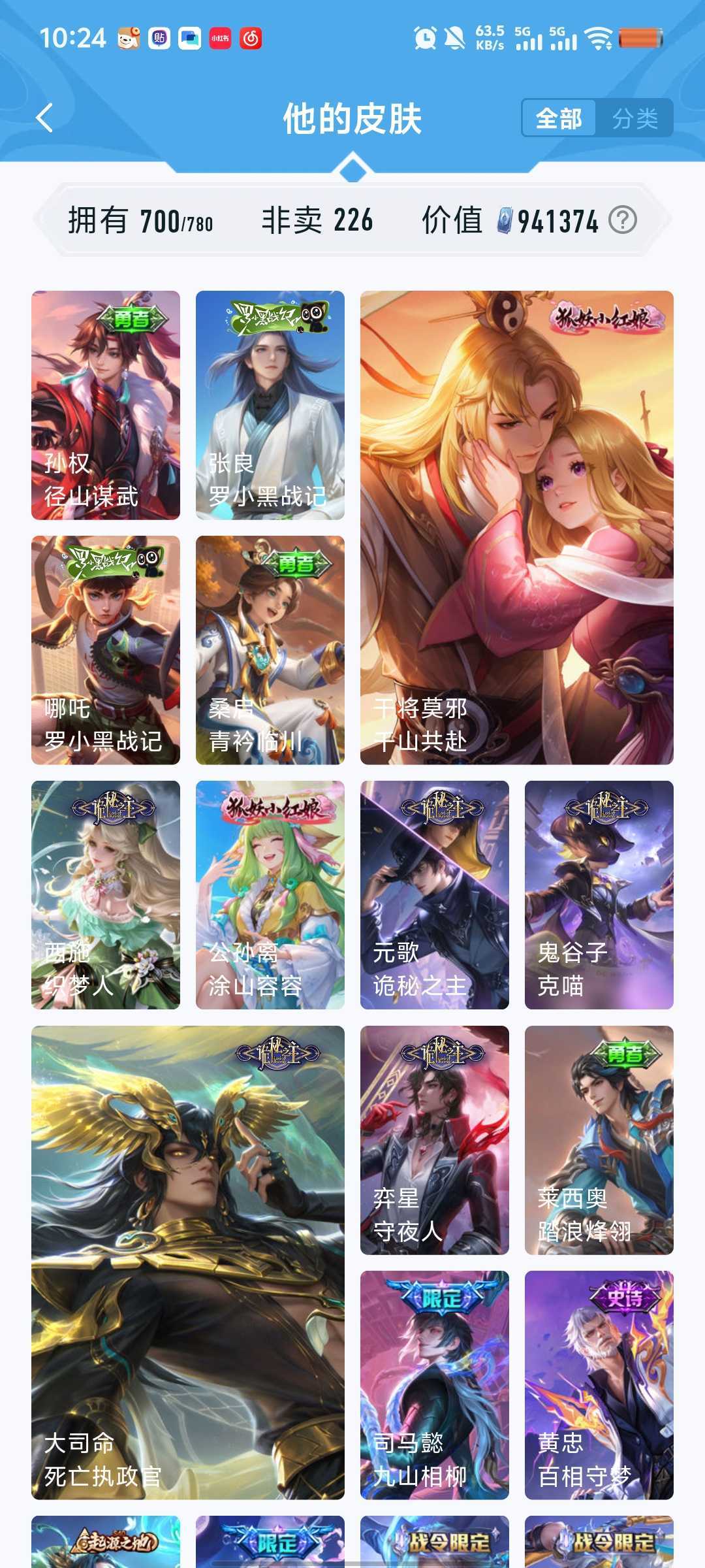 700皮18典藏9无双李信问心剑马年全万灵千山❤️诡秘全三丽鸥❤怪盗基德离恨花合斗♥拾光剑心九尾明辉