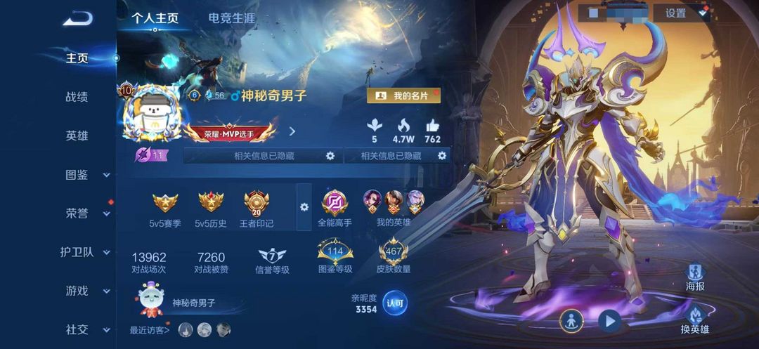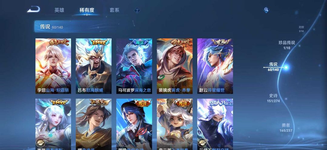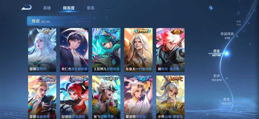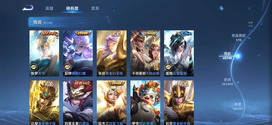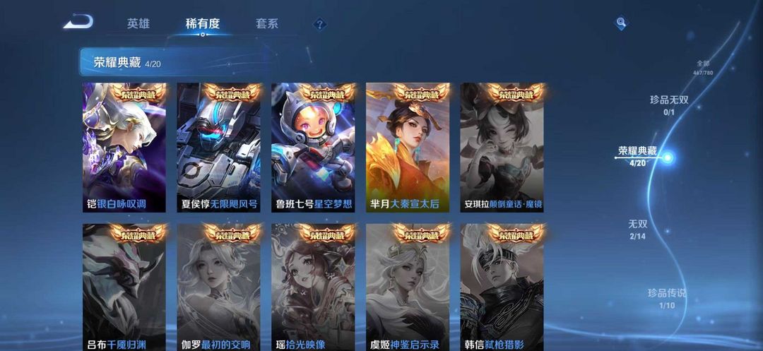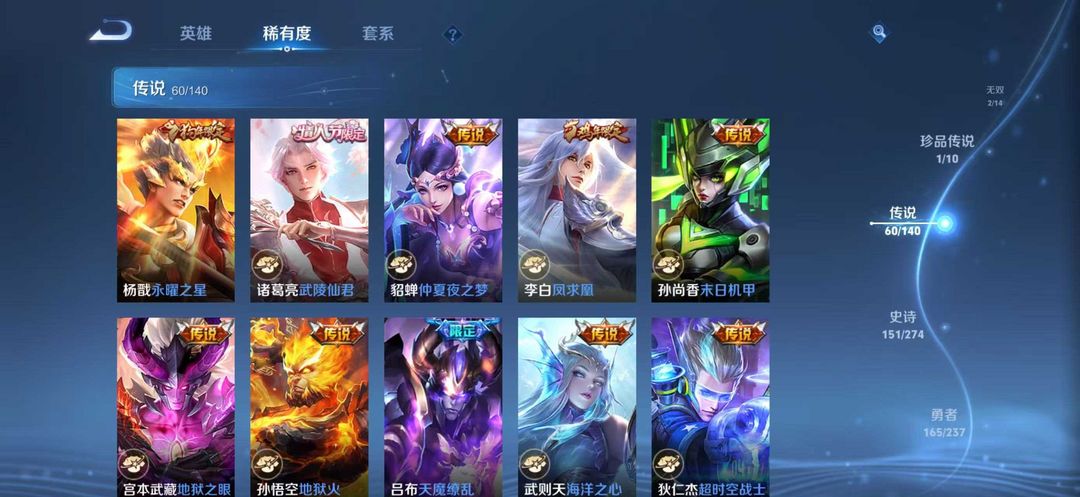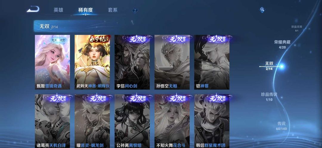 直接上号❤️4个典藏2个无双60个传说皮肤★嫦娥珍品马年限定全套已买