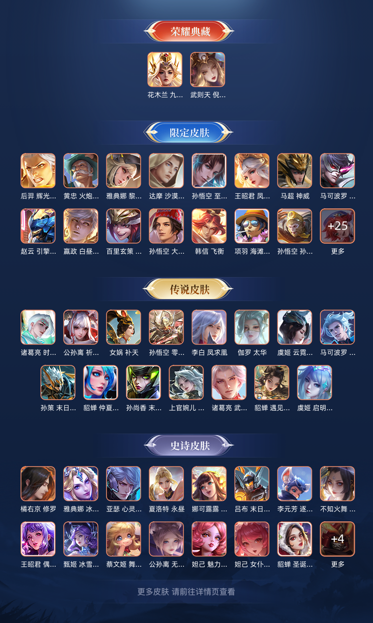 装备描述:武则天(武则天 倪克斯神谕);艾琳;金蝉(金蝉 唐三藏);韩信(韩信 教廷特使,韩信 飞衡);赵云(赵云 忍·炎影,赵云 皇家上将,赵云 引擎之心);嬴政(嬴政 优雅恋人,嬴政 白昼王子);夏洛特(夏洛特 永昼);娜可露露(娜可露露 晚萤,娜可露露 前尘镜);不知火舞(不知火舞 魅语,不知火舞 绯月行);橘右京(橘右京 修罗);诸葛亮(诸葛亮 星航指挥官,诸葛亮 黄金分割率,诸葛亮 武陵仙君,诸葛亮 掌控之力,诸葛亮 时雨天司);孙悟空(孙悟空 西部大镖客,孙悟空 至尊宝,孙悟空 大圣娶亲,孙悟空 零号·赤焰,孙悟空 孙行者);花木兰(花木兰 兔女郎,花木兰 水晶猎龙者,花木兰 默契交锋,花木兰 九霄神辉);宫本武藏(宫本武藏 万象初新);关羽(关羽 龙万里);杨戬(杨戬 埃及法老,杨戬 次元傲视);吕布(吕布 猎兽之王);雅典娜(雅典娜 战争女神,雅典娜 冰冠公主,雅典娜 单词大作战,雅典娜 黎明之约);哪吒(哪吒 三太子,哪吒 次元突破);成吉思汗(成吉思汗 维京掠夺者);李白(李白 凤求凰);钟馗(钟馗 地府判官,钟馗 驱傩正仪);廉颇;小乔(小乔 万圣前夜,小乔 丁香结);墨