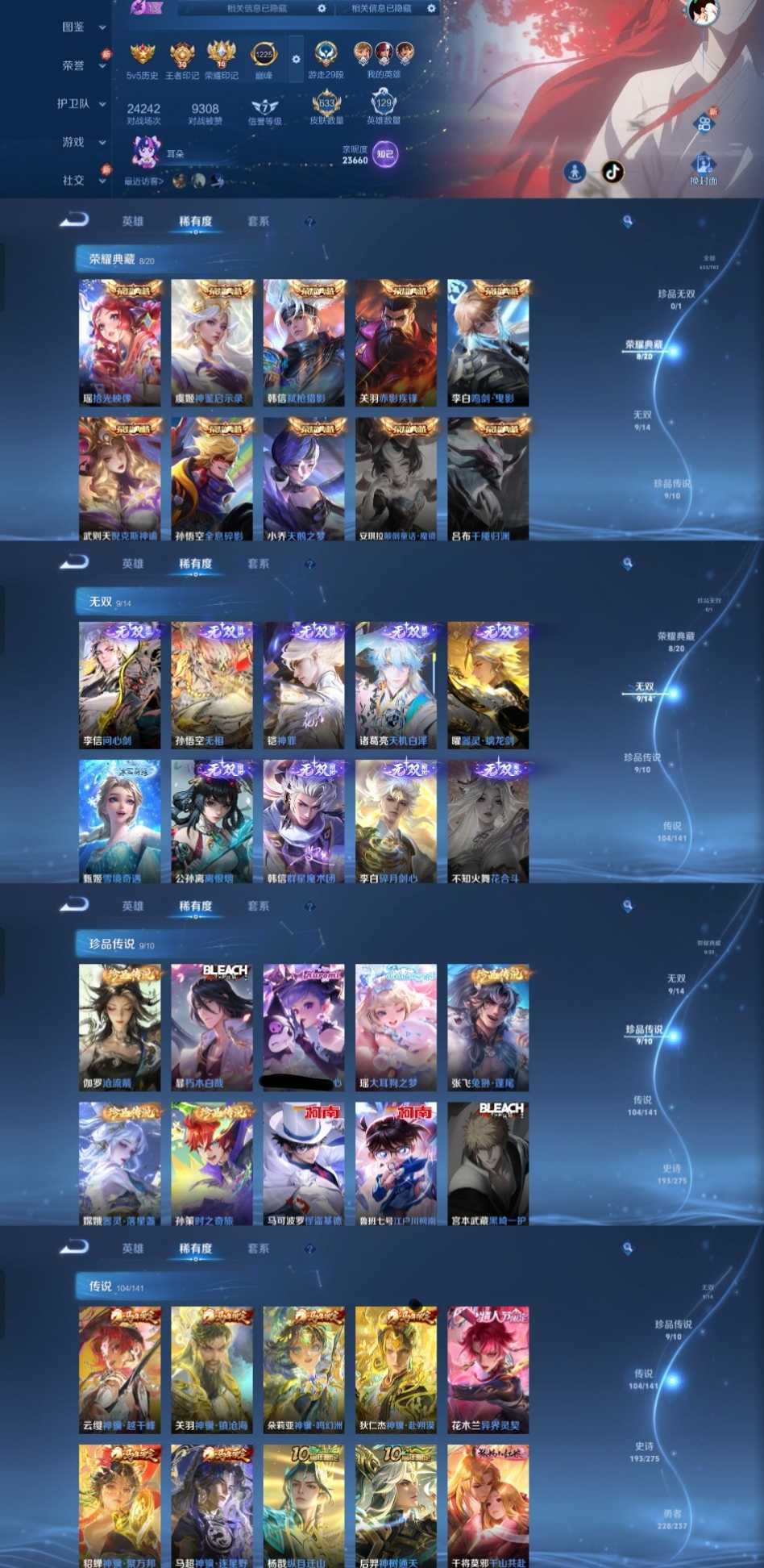 限制: 租号2次及以上 | 撤单率<49%才可租用此帐号装备描述:时间到了还登录白玩或者顶号全部改密拉黑处理永不解除,顶号机器会秒禁玩改密,顶号不仅拉黑还没得玩,赚三两块不容易,请理解谢谢。 ❤❤❤❤❤❤❤❤❤❤❤❤❤❤❤ 请勿开挂,挂机,送头,骂人,撤单后游戏等如有违规永久拉黑永不解除。 重置二级密码不要费劲了,号主每天都会上号查看,多行不义必自毙,人在做天在看,多做好事多自律,少做缺德事。 该号英雄129个皮肤633个,典藏9个,无双9个,珍品传说9个,星传说8个,传说104个,史诗193个,祝你游戏愉快