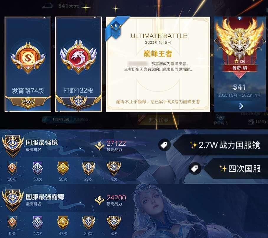 2月正式服在榜132段国服打野❤️27000战力世界第一国服镜❤️2w4国服露娜天花板s35巅峰第一