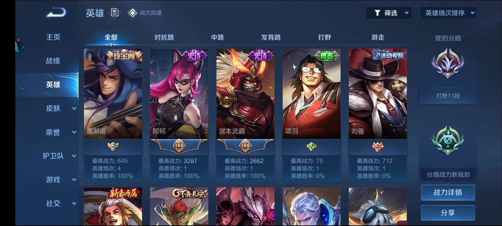 装备描述:v4 英雄106 皮肤74 暗夜猫娘,鬼剑武藏 李小龙 玩趣恶龙 12套铭文