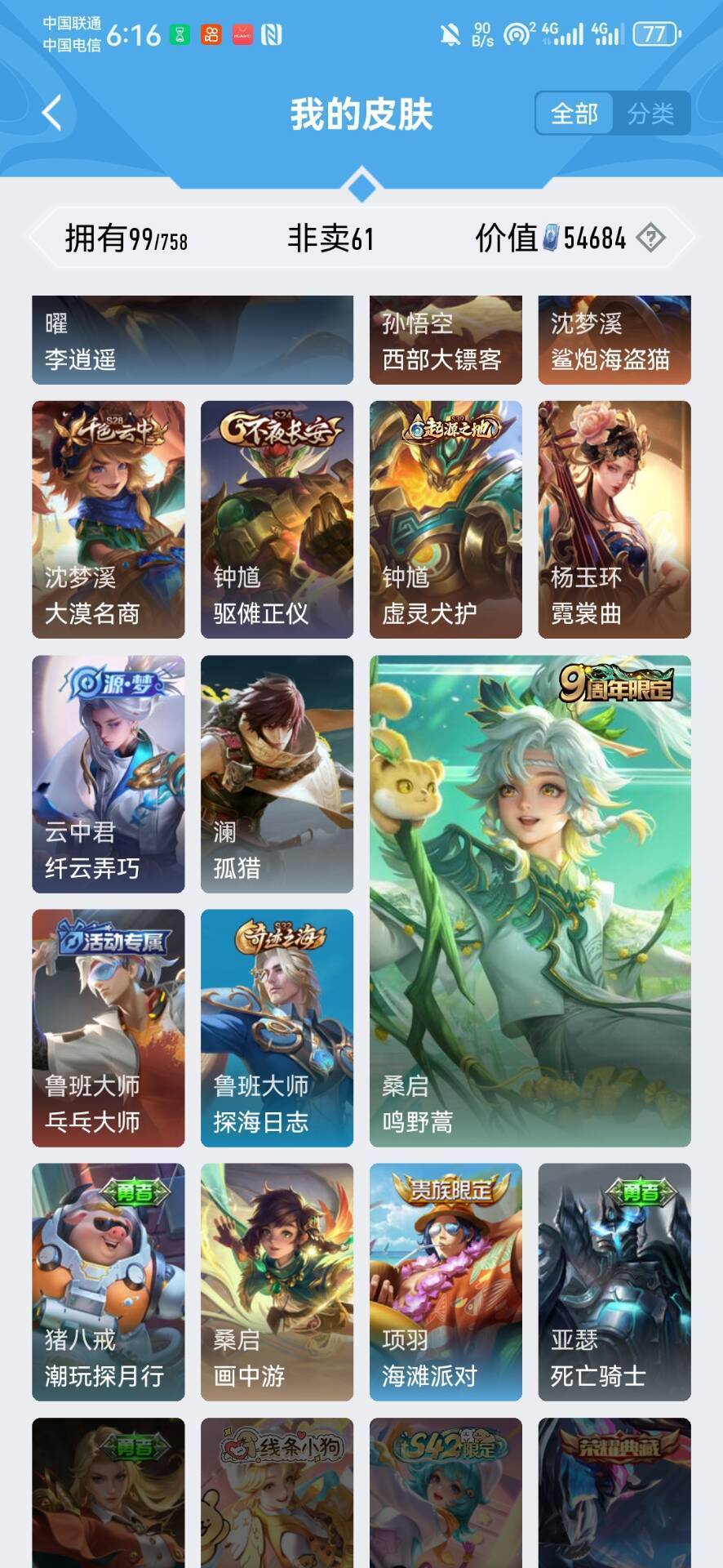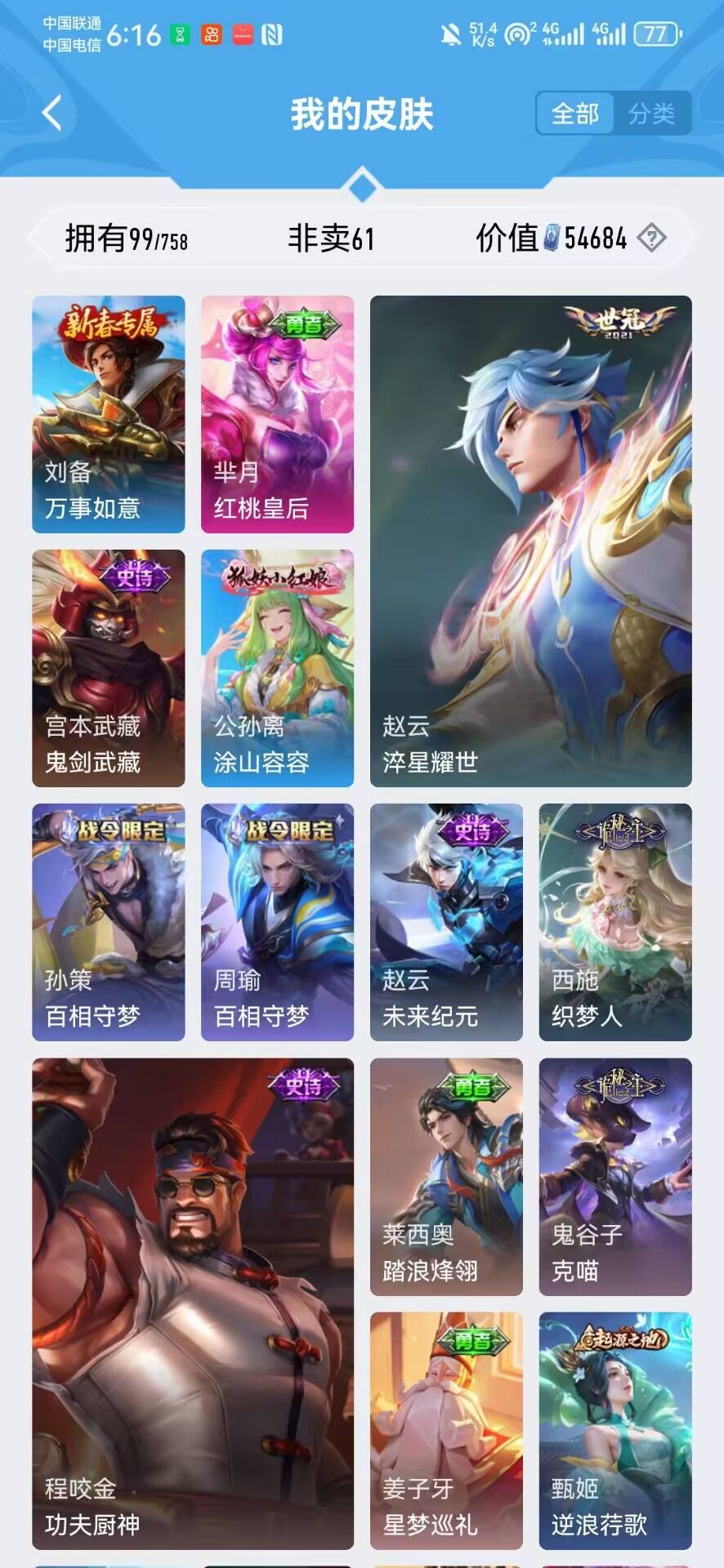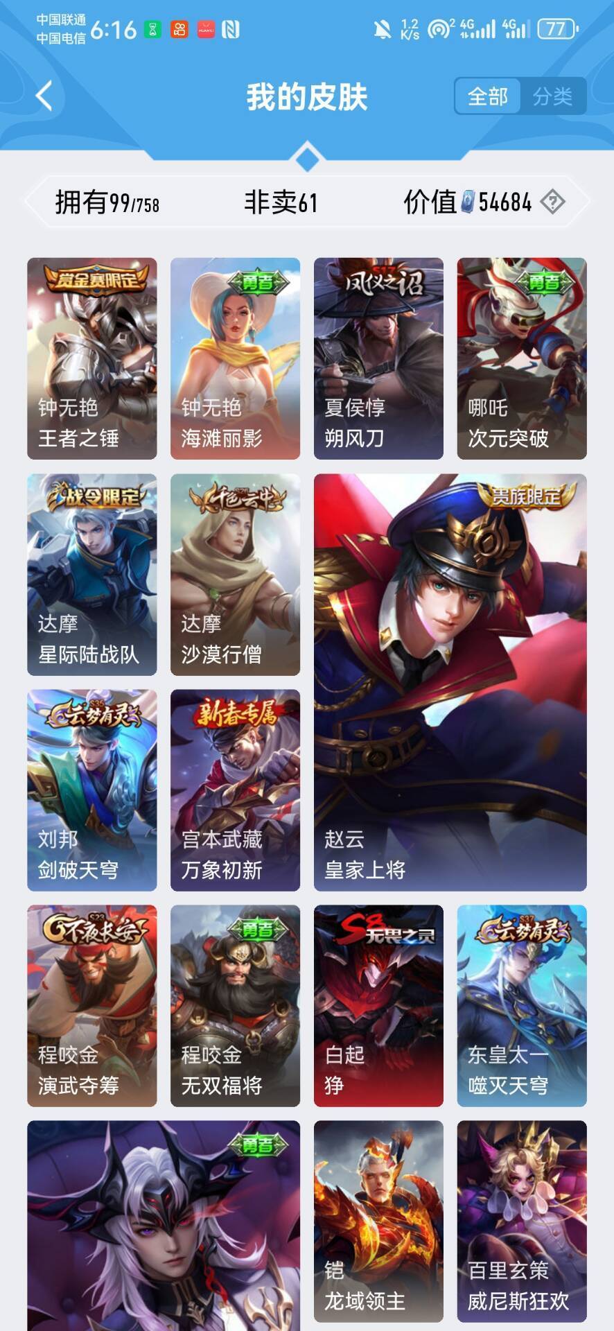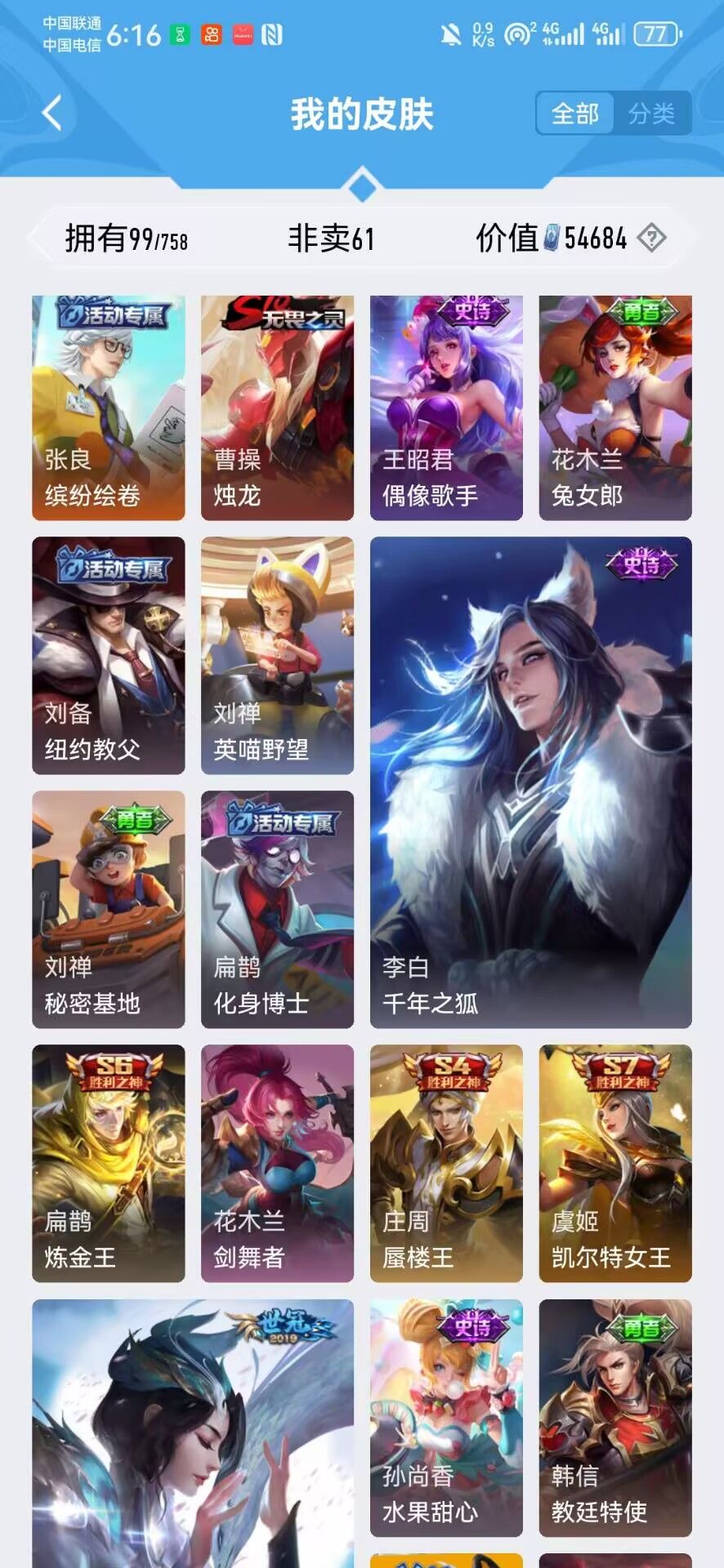 128皮回归小号可五排✨赵云虞姬世冠皮肤✨诡秘之主狐妖小狐娘全套✨千年之狐✨✨✨详看描述