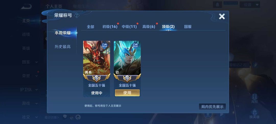 只能无限乱斗!本周在榜全国五十强铠典韦❤️无双限定铠⚡️历史国服马超孙策戈雅国服凯抢先服