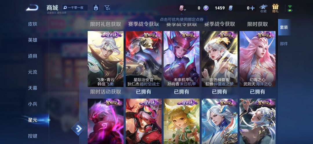 历史⑤金标 公孙离无双 貂蝉珍品 瑶安吉拉已补 瑶妹典藏 粉小兵皮 八无双多水百传 萌妹专属