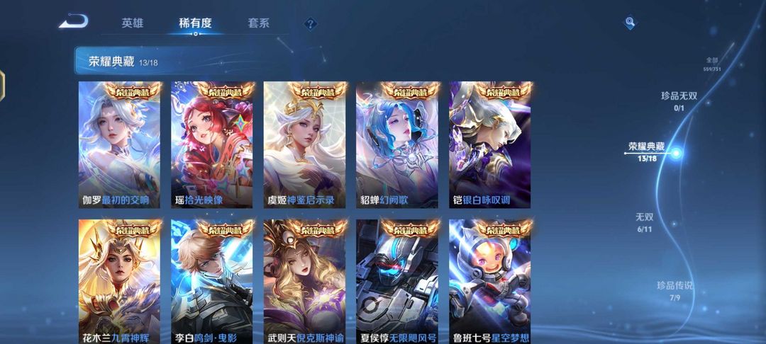诸葛无双秒入 瑶安吉拉已补 雪小兵皮 八水多传珍品全 打野多皮多限定 带妹专属