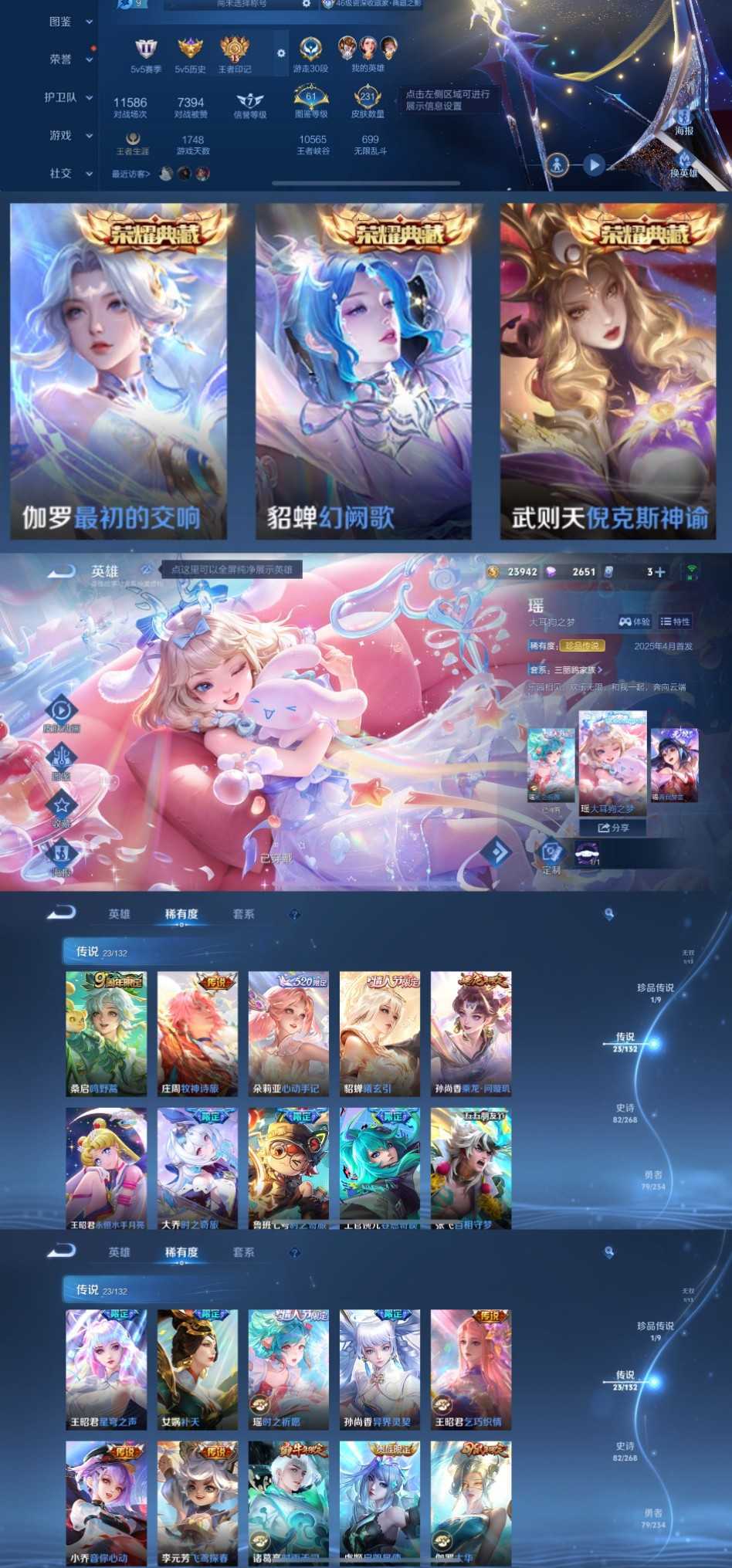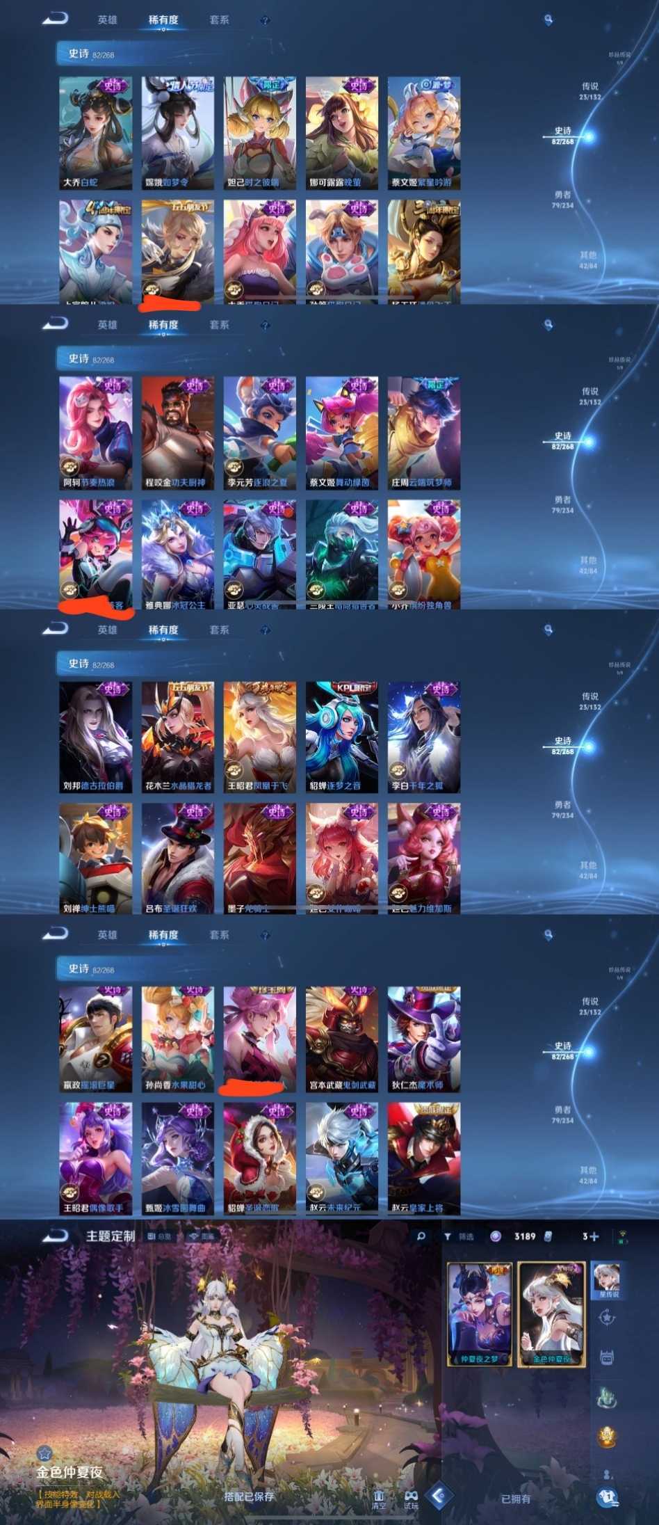 限制: 租号1次及以上 | 撤单率<49%才可租用此帐号装备描述:时间到了还登录白玩或者顶号全部改密拉黑处理永不解除,顶号机器会秒禁玩改密,顶号不仅拉黑还没得玩,赚三两块不容易,请理解谢谢。 ❤❤❤❤❤❤❤❤❤❤❤❤❤❤❤ 请勿开挂,挂机,送头,骂人,撤单后游戏等如有违规永久拉黑永不解除。 重置二级密码不要费劲了,号主每天都会上号查看,多行不义必自毙,人在做天在看,多做好事多自律,少做缺德事。 该号英雄129个皮肤231个,典藏3个,无双1个,珍品传说1个,星传说1个,传说23个,史诗82个,祝你游戏愉快~
