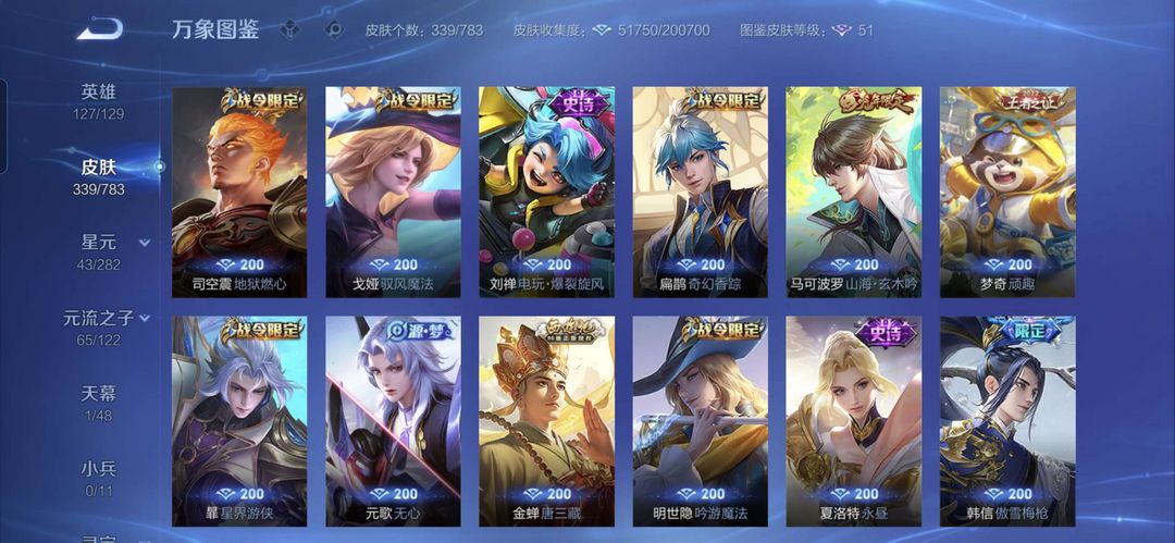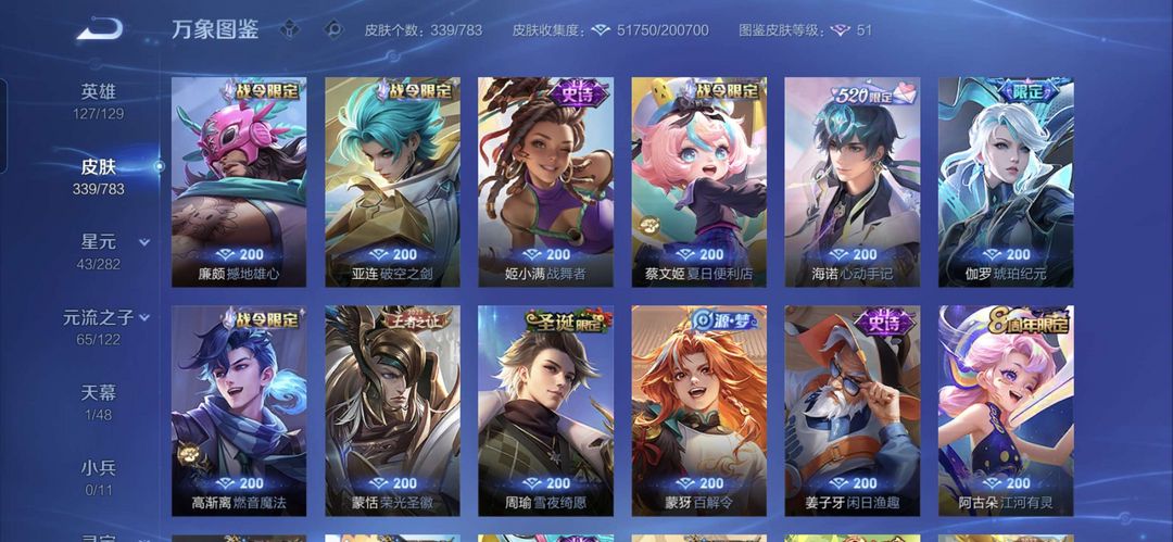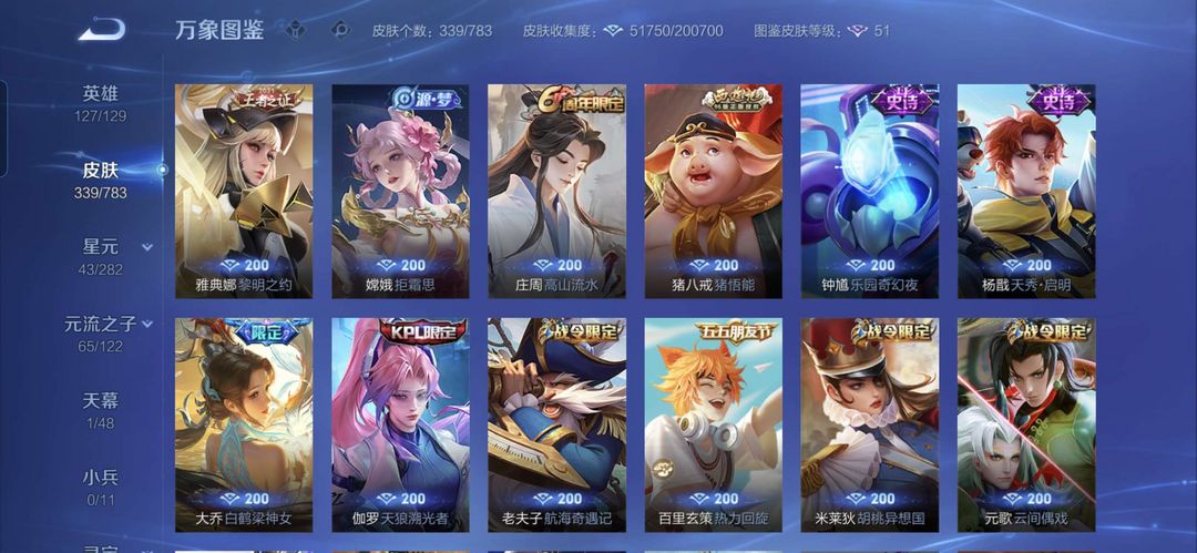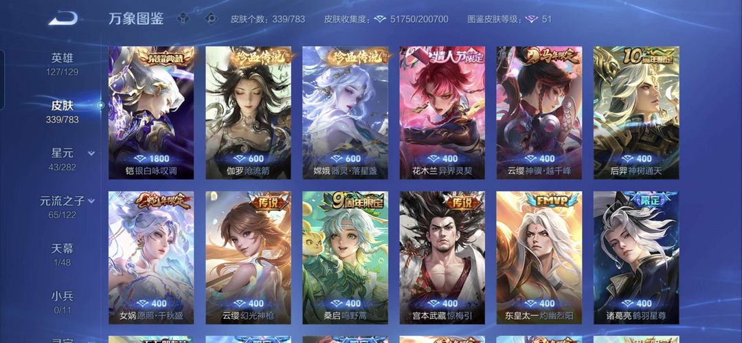 嫦娥无双,伽罗无双,云缨年限,花木兰限定,等多款皮肤,喜欢可收藏