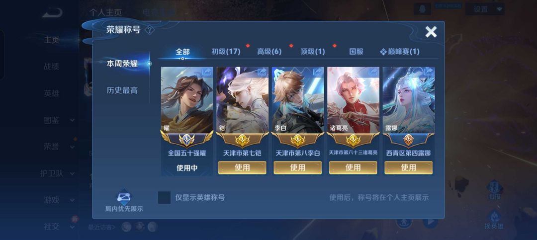 抢先服本周在榜五十强强曜❤️李逍遥限定❤️历史国服李白2月3152