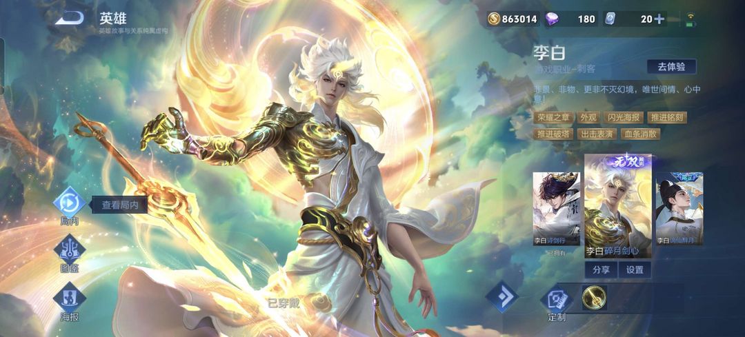 限制: 租号2次及以上 |装备描述:毁号,涉及毁坏虚拟财产罪及计算机安全罪,请文明游戏素质游戏,让我们共建美好租号平台 本游戏账号: 英雄多皮肤多。典藏皮肤4个感受典藏皮肤带来的优质体验快感FMVP皮肤9个尽情享受FMVP皮肤带来的主角光环 私人所属英雄皮肤有:关羽 赤影疾锋夏侯惇 无限飓风号小乔 天鹅之梦百里守约 碎云周瑜 音你心动梦奇 胖达荣荣达摩 黄金狮子座关羽 武圣李信 山海·炽霜斩李信 一念神魔孙尚香 音你闪耀孙尚香 末日机甲孙尚香 异界灵契李白 凤求凰李白 诗剑行诸葛亮 时雨天司诸葛亮 鹤羽星尊上官婉儿 神器·万象笔孙悟空 齐天大圣孙悟空 零号·赤焰孙悟空 地狱火李元芳 飞鸢探春狄仁杰 超时空战士狄仁杰 神器·狴犴令后羿 无尽星芒后羿 黄金射手座王昭君 乞巧织情夏洛特 浮生妄黄金白羊座孙策 末日禁止利用账号进行开挂、使用辅助违规软件诈骗等违规操作。喜欢本账号请点 ☆收藏☆ 方便下次租用,谢谢光临惠顾!请游戏局内保持文明,防止禁言影响他人游戏,祝您玩得愉快!
