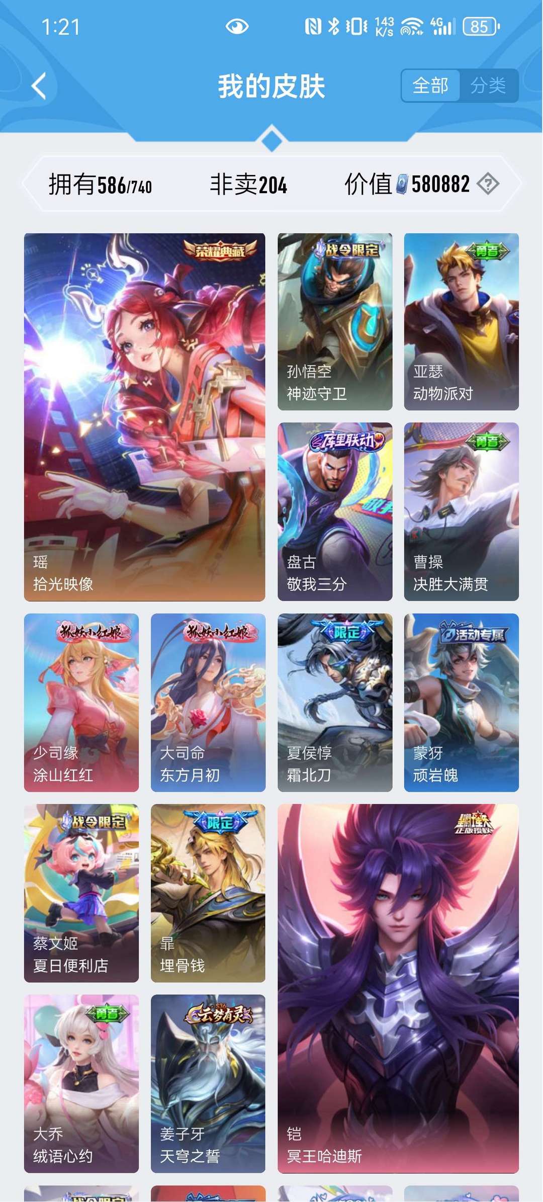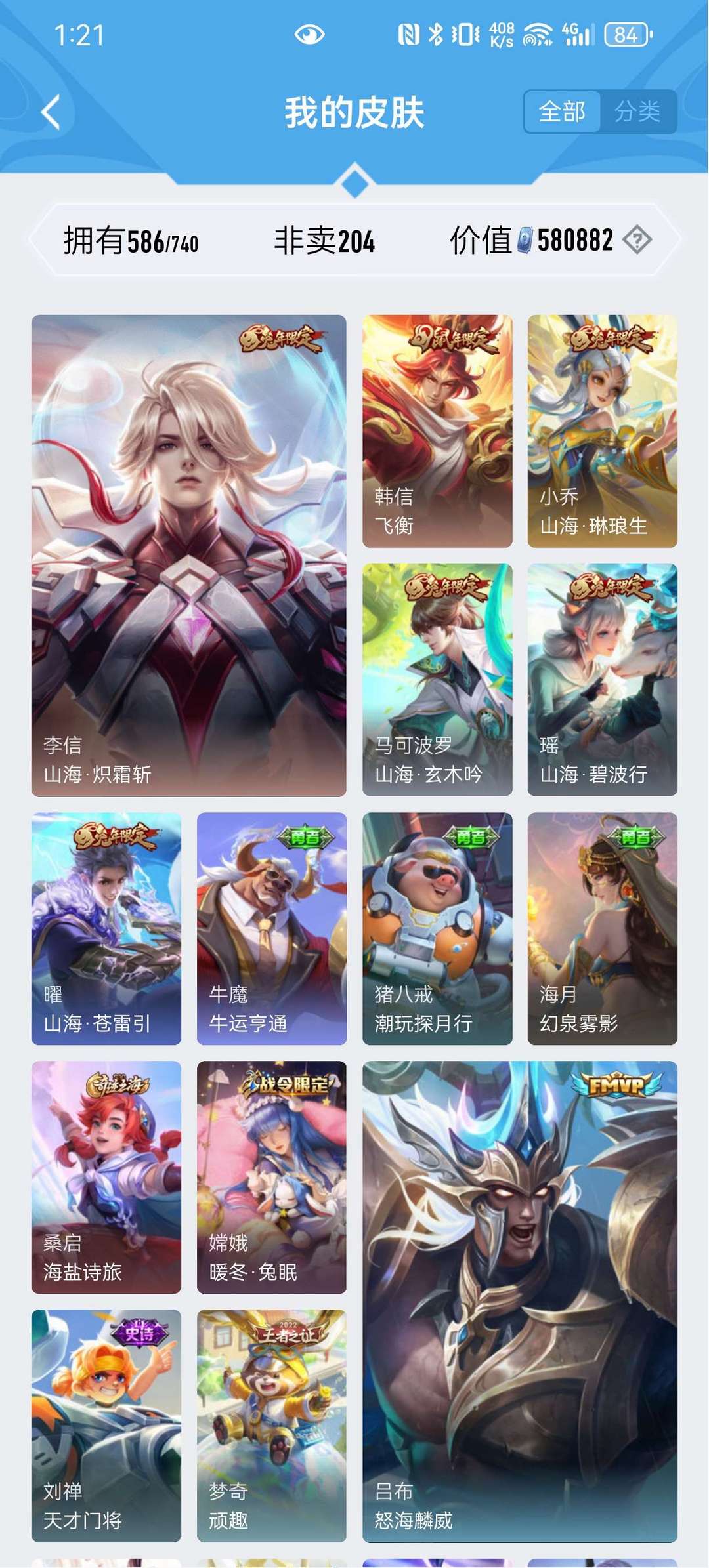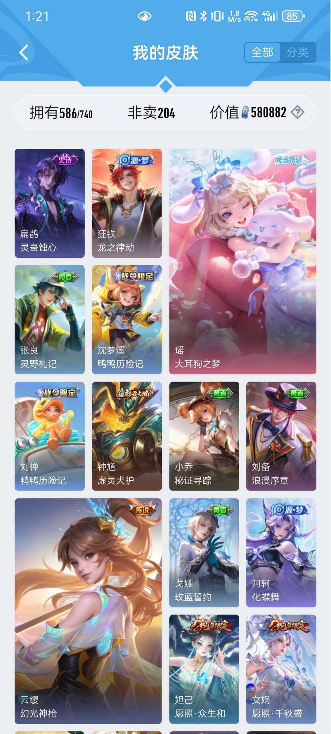 v10无双贵族,仓库道具禁止使用,586个皮肤,各种传说星元皮肤都有!