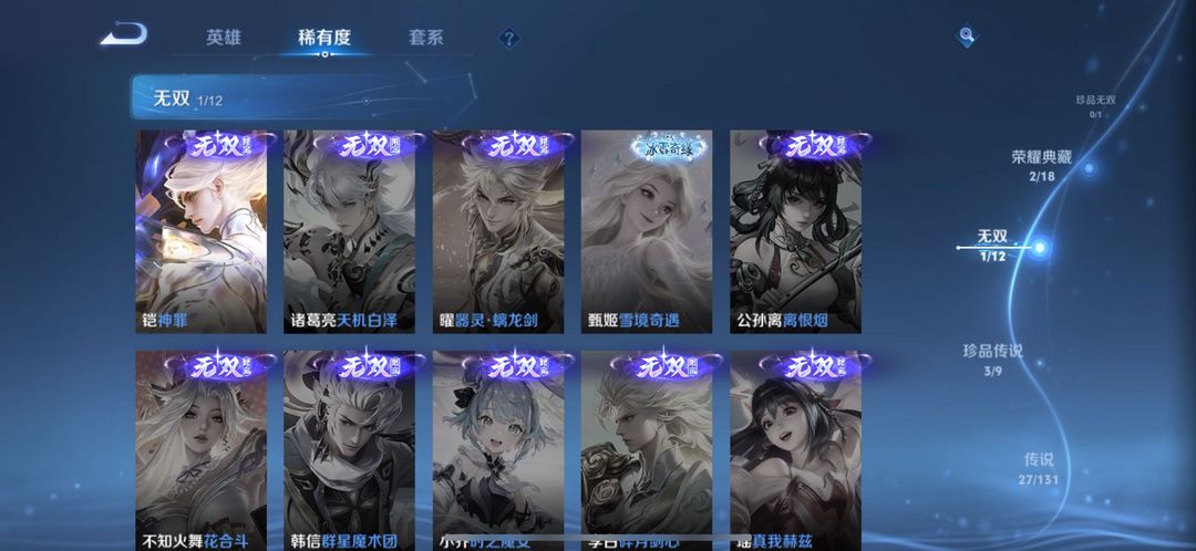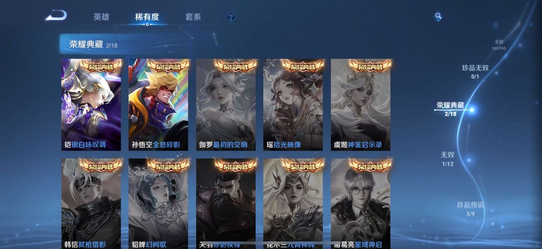 装备描述:全皮老虎,白虎志,大圣娶亲,幽冥火,无双飞将,炽阳神光,银白咏叹调,李逍遥,幽冥之眼,武陵仙君,一念神魔,梅西,九山相柳,神罪等热门皮肤