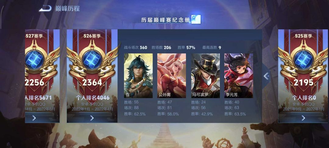 历史小国标1.5w孙尚香⭐历史1.7w小国公孙离⭐四小国苍蒙犽⭐86段发育路⭐禁巅峰必顶号
