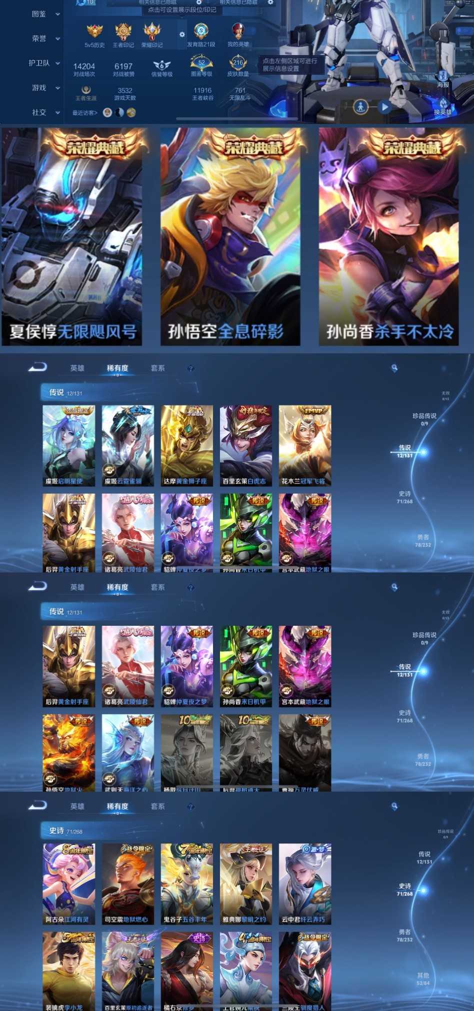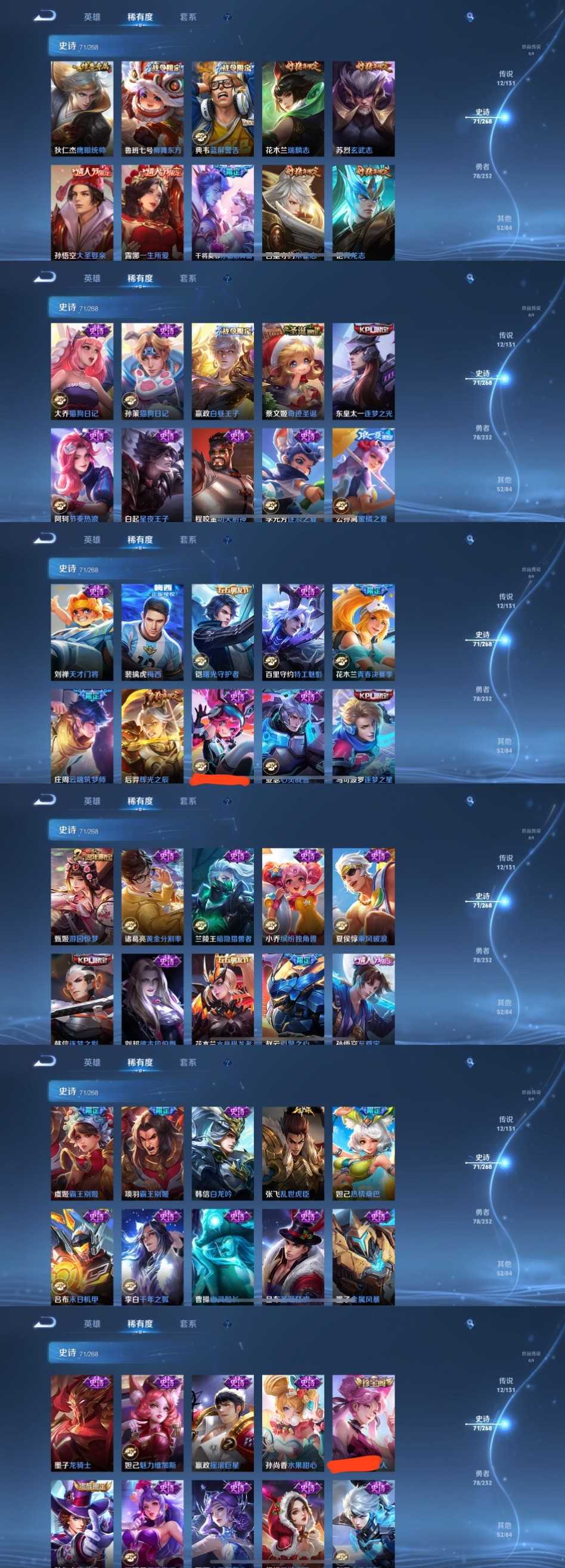 限制: 撤单率<49%才可租用此帐号装备描述:时间到了还登录白玩或者顶号全部改密拉黑处理永不解除,顶号机器会秒禁玩改密,顶号不仅拉黑还没得玩,赚三两块不容易,请理解谢谢。 ❤❤❤❤❤❤❤❤❤❤❤❤❤❤❤❤❤❤❤ 请勿开挂,挂机,送头,骂人,撤单后游戏等如有违规永久拉黑永不解除。 重置二级密码不要费劲了,号主每天都会上号查看,多行不义必自毙,人在做天在看,多做好事多自律,少做缺德事。 该号英雄127个皮肤216个,典藏3个,传说12个,史诗71个,祝您游戏愉快~