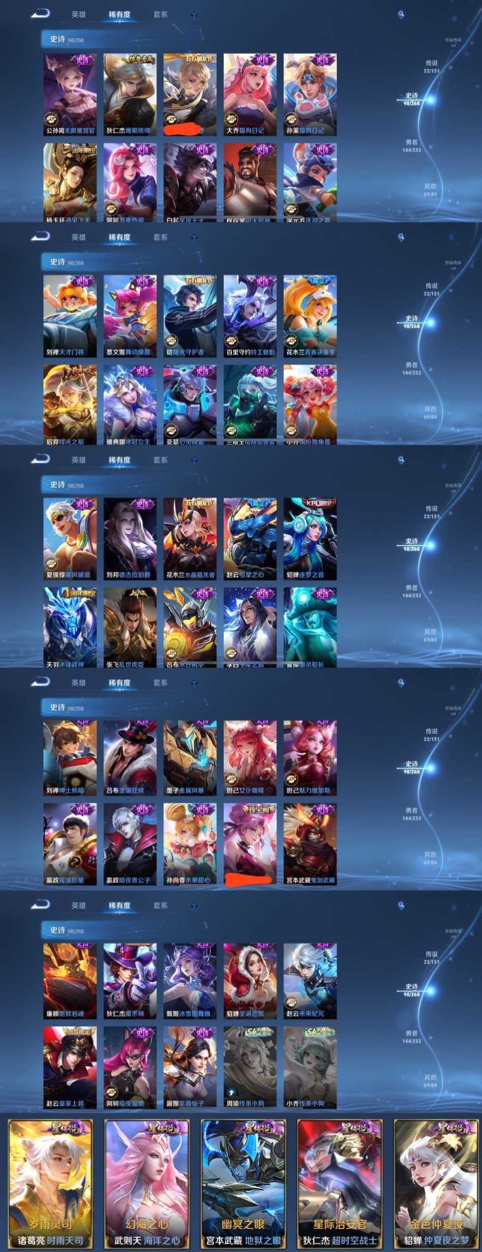 限制: 撤单率<49%才可租用此帐号装备描述:时间到了还登录白玩或者顶号全部改密拉黑处理永不解除,顶号机器会秒禁玩改密,顶号不仅拉黑还没得玩,赚三两块不容易,请理解谢谢。 ❤❤❤❤❤❤❤❤❤❤❤❤❤❤❤ 请勿开挂,挂机,送头,骂人,撤单后游戏等如有违规永久拉黑永不解除。 重置二级密码不要费劲了,号主每天都会上号查看,多行不义必自毙,人在做天在看,多做好事多自律,少做缺德事。 该号英雄127个皮肤337个,典藏2个,无双1个,珍品传说1个,星传说5个,传说22个,史诗98个,祝你游戏愉快~