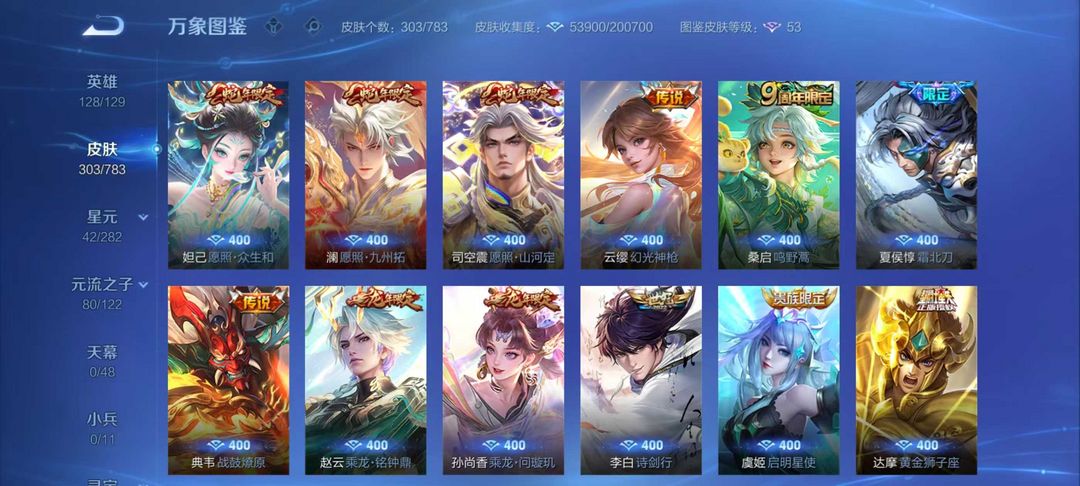 303皮⚡4无双4珍品⚡罗刹妄海踏浪归马年全套李信无双咏叹调天机白泽离恨烟螭龙剑黑崎一护诡秘元歌