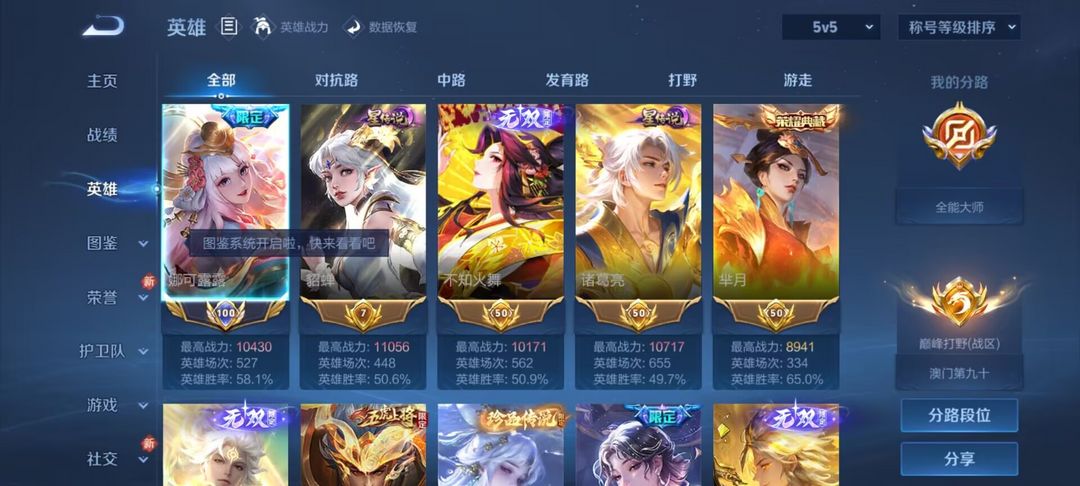 V10七水六星617皮澳门第90巅峰打野小国娜可露露8金标8无双4珍传91传器灵·螭龙剑离恨烟花合斗