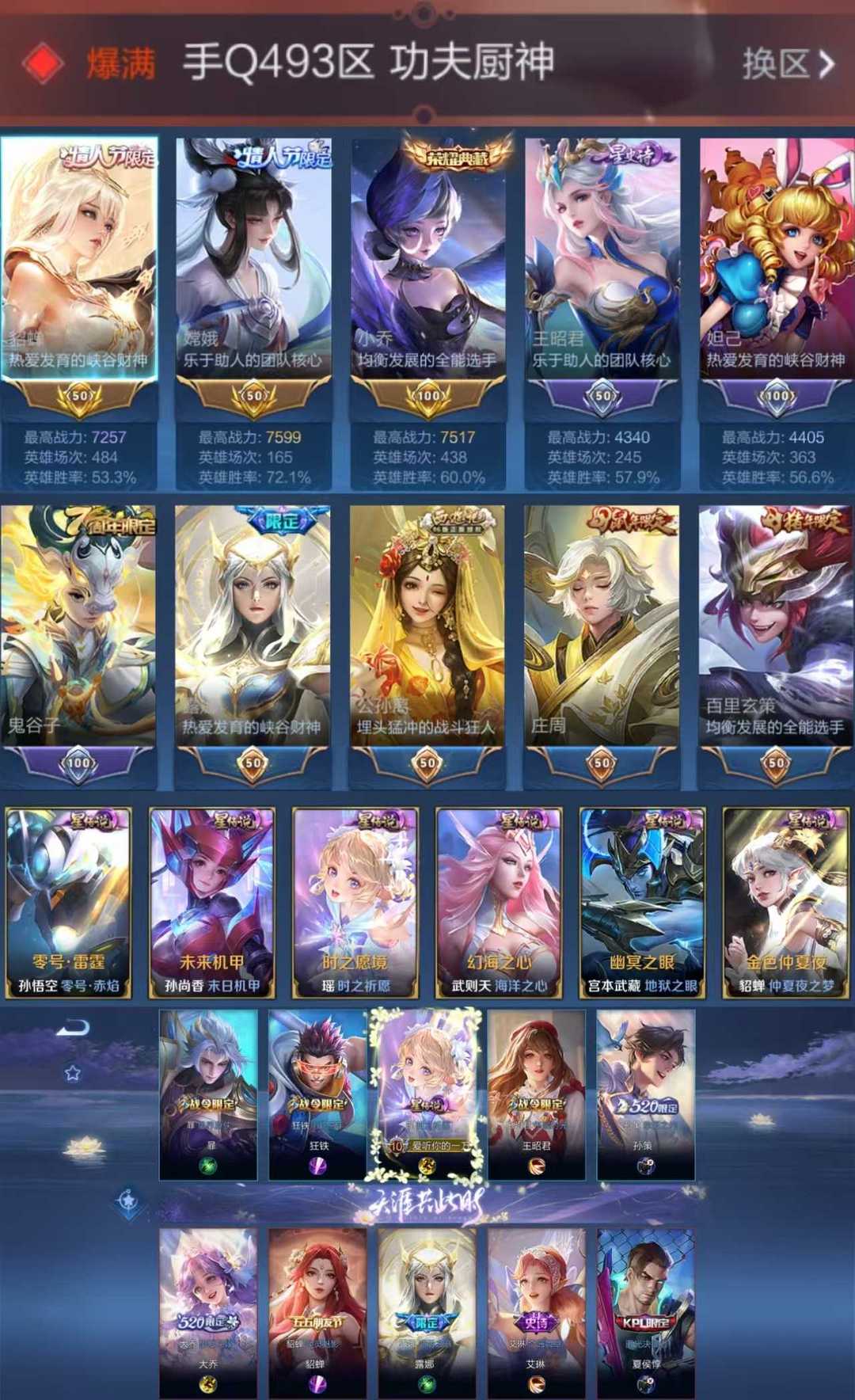 限制: 租号5次及以上 |装备描述:【C321】贵族V10~女号450皮肤10水晶46传说3省标貂蝉小乔情瑶幻阙歌,启示之音,祈雪灵祝,太华,李逍遥,天魔缭乱,倪克斯神谕,全息碎影,鸣剑曳影,无限飓风号,大秦宣太后,星空梦想,天鹅之梦,星域神启,杀手不太冷【全山海情兔年,全寅虎,全五虎上将,全牛年,全五兽】