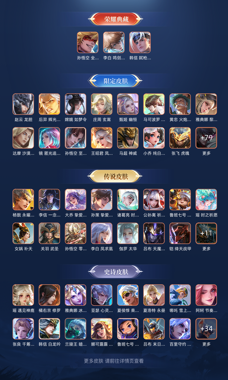 装备描述:毁号,涉及毁坏虚拟财产罪及计算机安全罪,请文明游戏素质游戏,让我们共建美好租号平台 本游戏账号: 英雄多皮肤多。典藏皮肤5个感受典藏皮肤带来的优质体验快感FMVP皮肤5个尽情享受FMVP皮肤带来的主角光环 私人所属英雄皮肤有:小乔 天鹅之梦虞姬 神鉴启示录武则天 倪克斯神谕花木兰 九霄神辉夏侯惇 无限飓风号云中君 群星魔术团蔡文姬 花朝如约赵云 乘龙·铭钟鼎鲁班七号 时之奇旅女娲 补天亚连 落雪白狼曜 李逍遥小乔 音你心动露娜 霜月吟艾琳 觅芳踪裴擒虎 寅虎·赤拳马超 琥珀纪元吕布 遇见神鼓吕布 曦玄引云缨 鹤归松栖公孙离 祈雪灵祝公孙离 记忆之芯孙膑 小动物乐团百里守约 碎云达摩 黄金狮子座周瑜 音你心动孙尚香 乘龙·问璇玑诸葛亮 时雨天司孙悟空 零号·赤焰孙悟空 地狱火李元芳 飞鸢探春大乔 挚爱花嫁大乔 时之奇旅桑启 鸣野蒿墨子 黄金天蝎座狄仁杰 夜礼服假面王昭君 星穹之声王昭君 永恒水手月亮虞姬 云