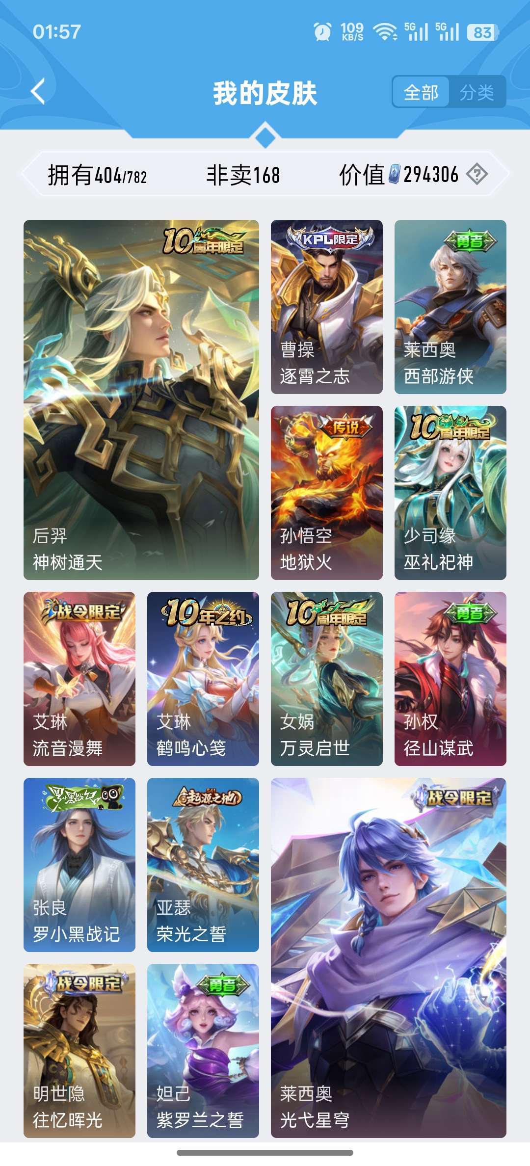 最强王者 V7 2典藏 409皮 凤求凰/武陵仙君/海洋之心/愿照九州拓/鸣剑曳影/最初的交响/