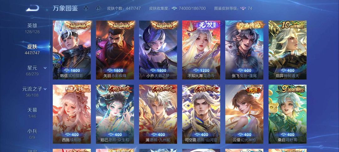 贵十四典藏一无双全英雄都有皮肤可体验对抗路50多段多个金标最高一万三战力