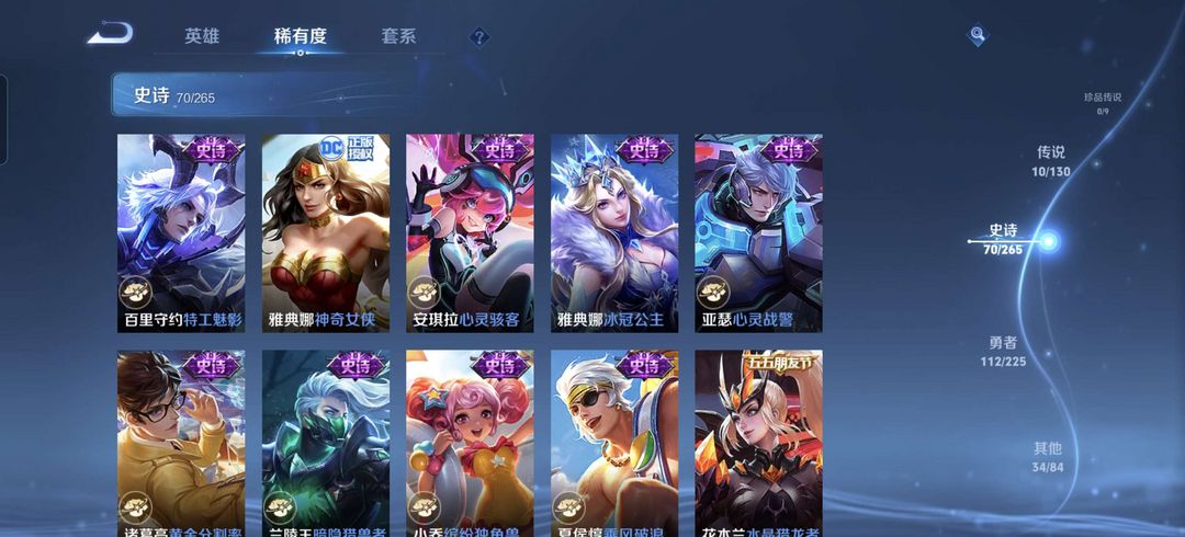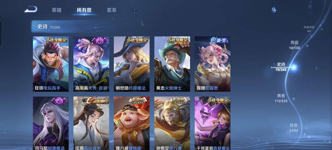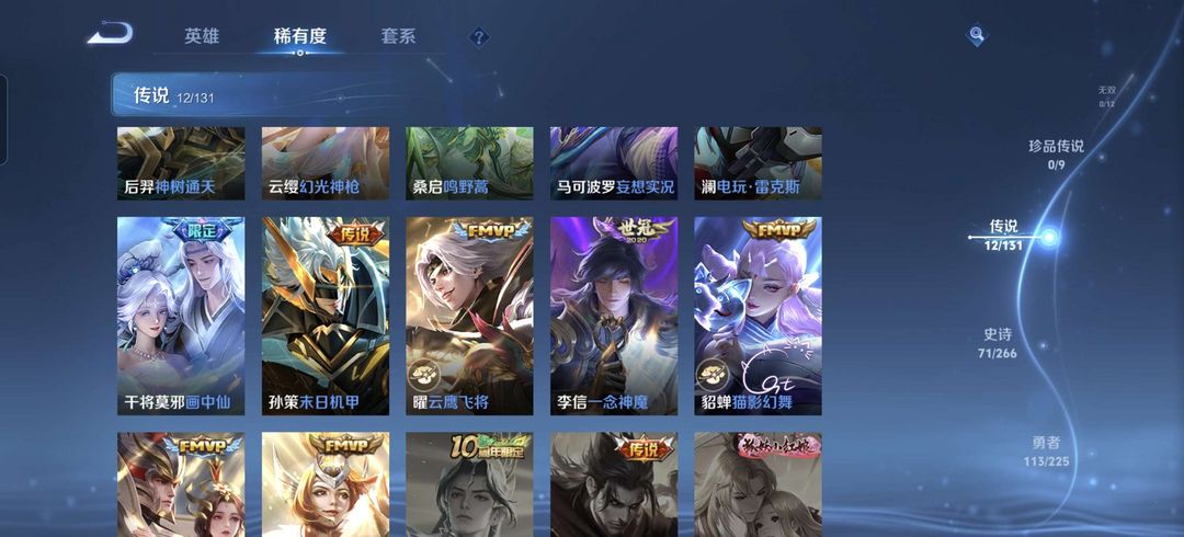 200皮肤V7有至尊宝,无限飓风号;引擎之心孙策末日机甲干将的画中仙貂蝉猫影幻舞等