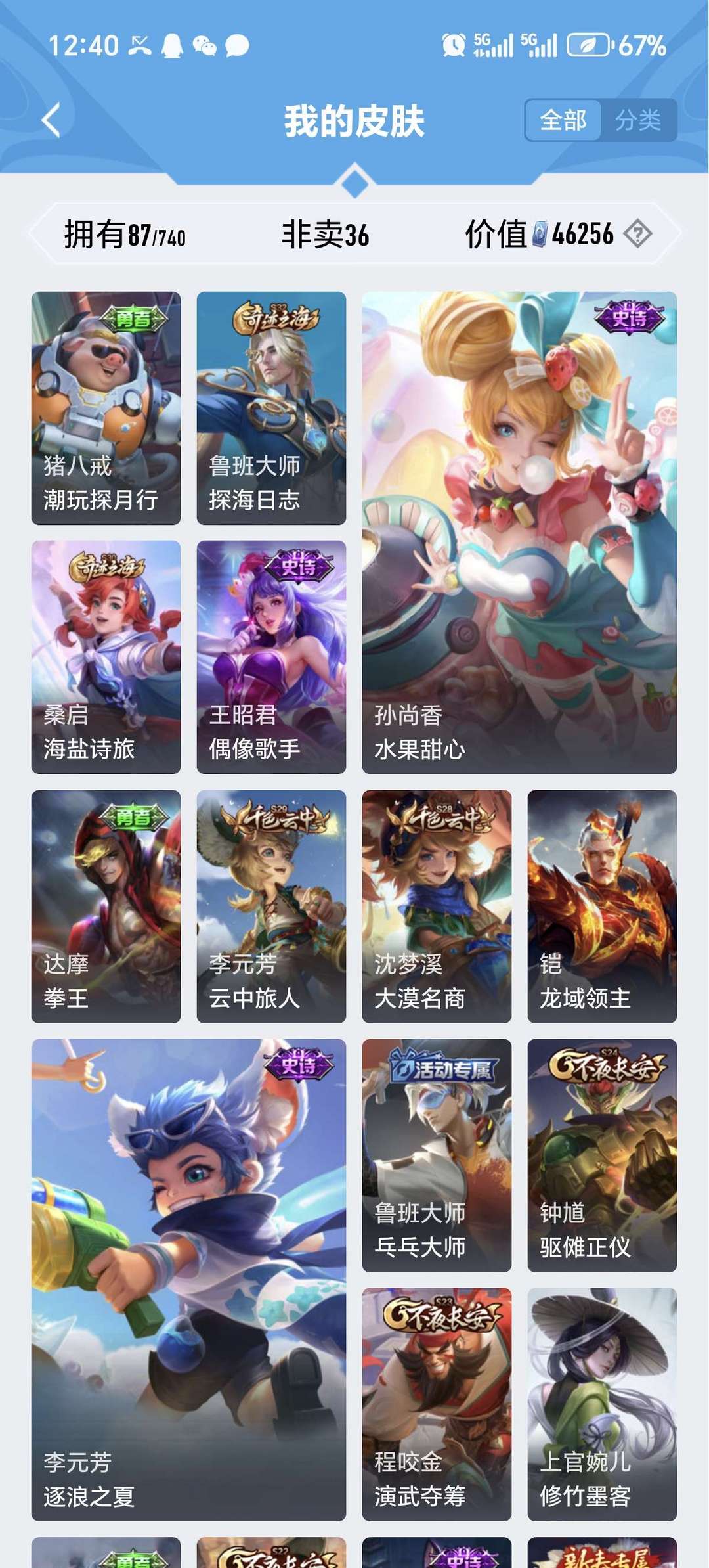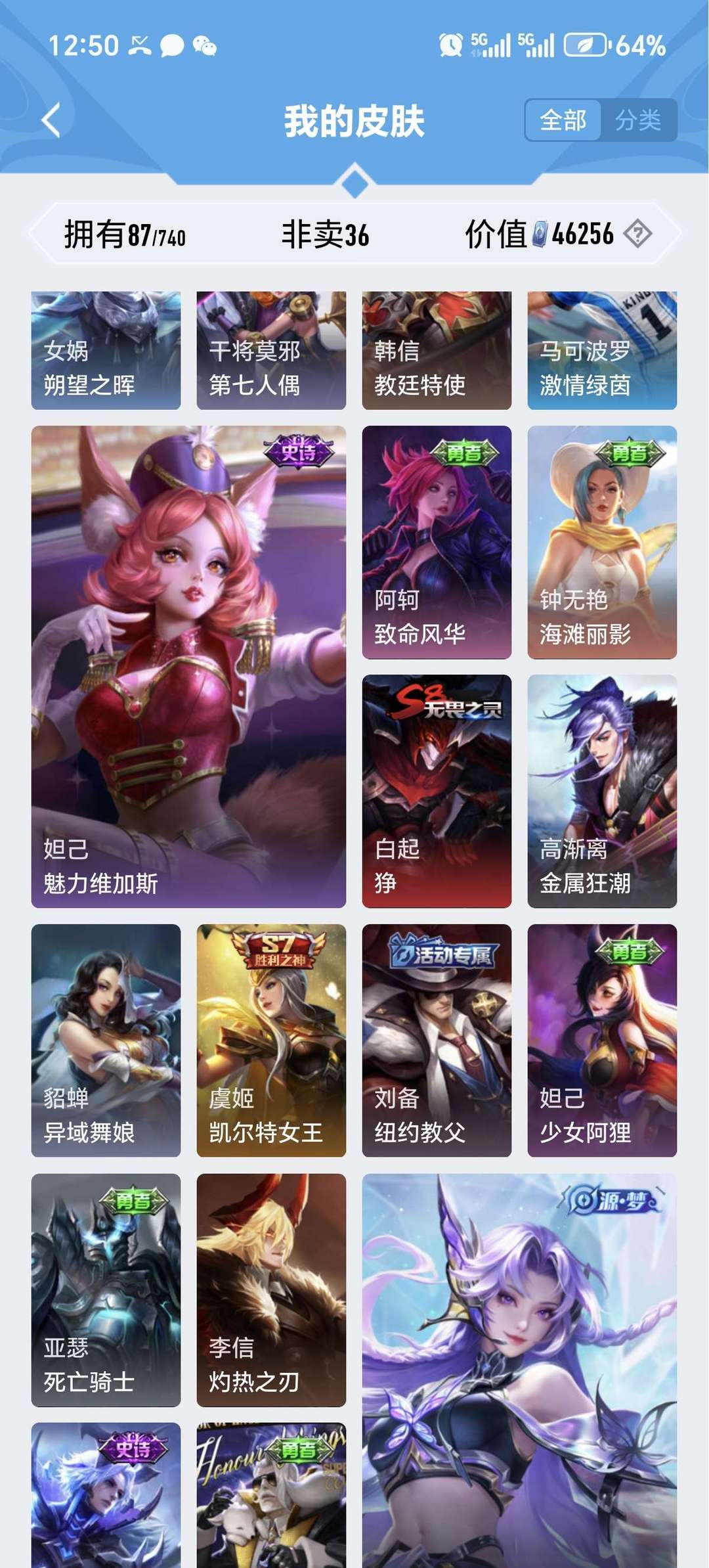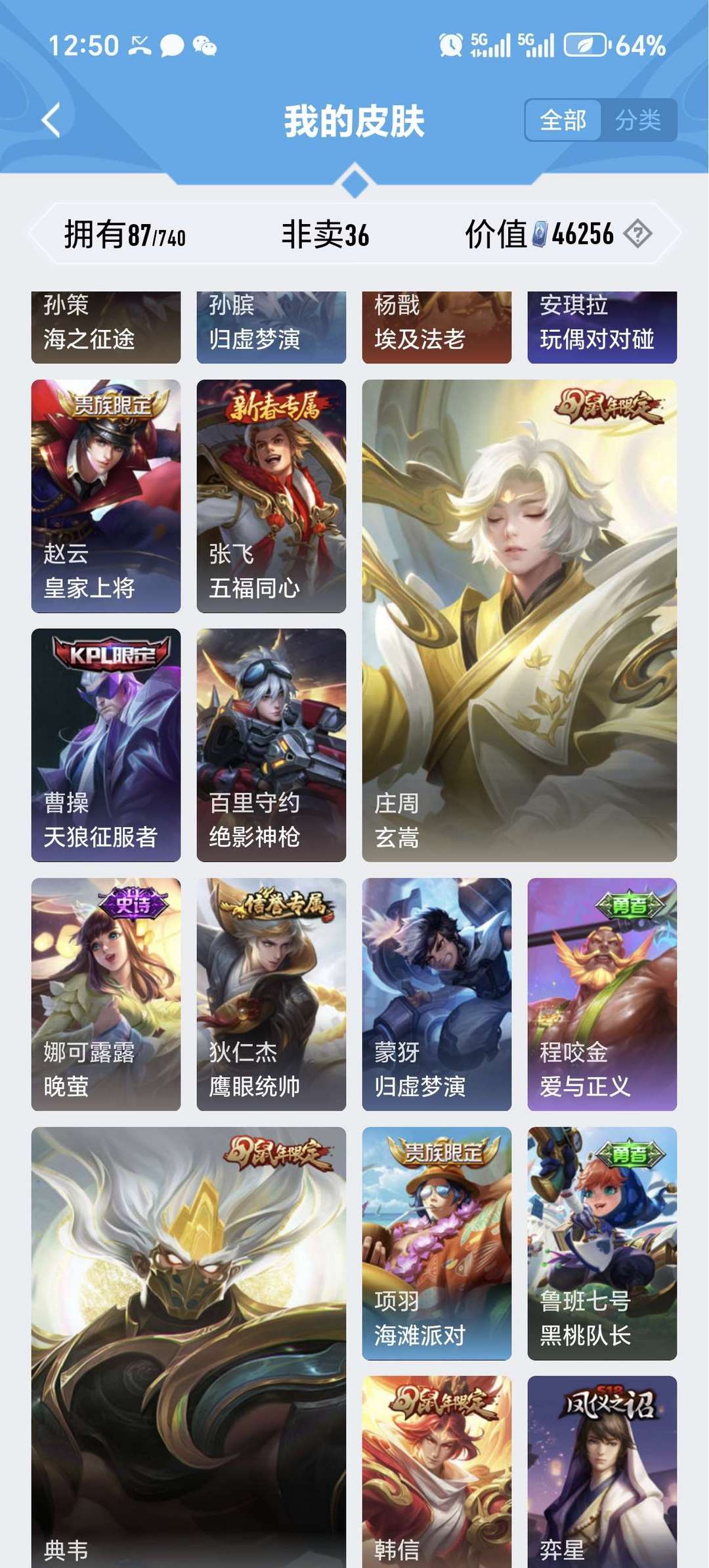 V7 113英 87皮 韩信 飞衡限 街头霸王 典韦 岱宗限 庄周 玄嵩限 阿轲 暗夜猫娘
