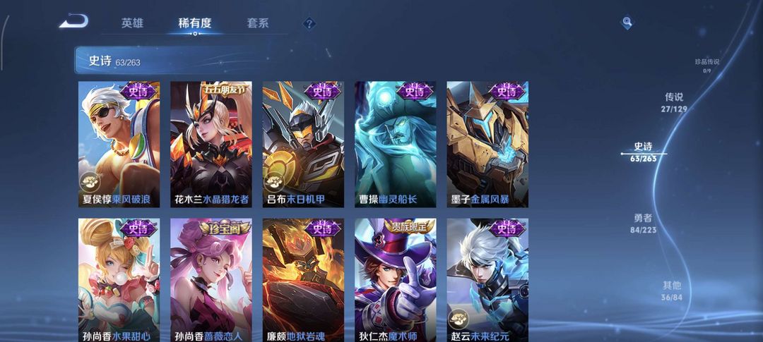 装备描述:V8,全鼠年限定牛年限定龙年限定蛇年限定,西施甄姬至美风华,李信兔年限定,花木兰荣耀典藏,多传说限定,可小刀