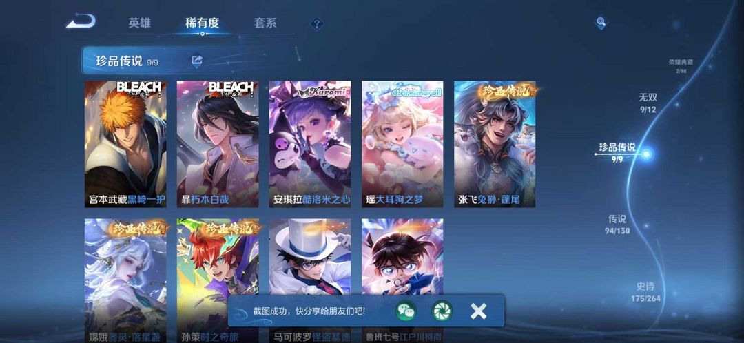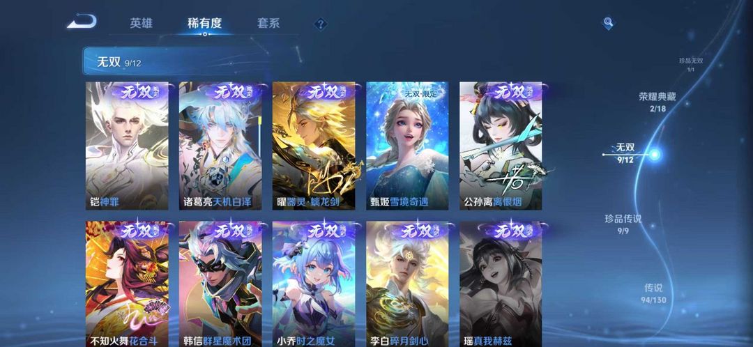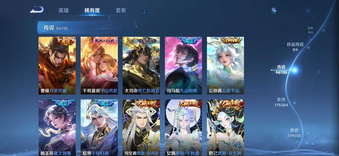 V10无双贵族✨549皮肤✨9无双✨9珍品传说✨馥梦繁花✨94传说✨蛇年限定套装