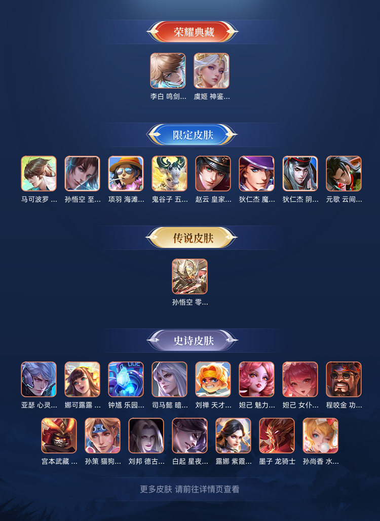 装备描述:马可怪盗基德 鲁班.柯南 暃的无双皮 宫本无双 张飞的无双