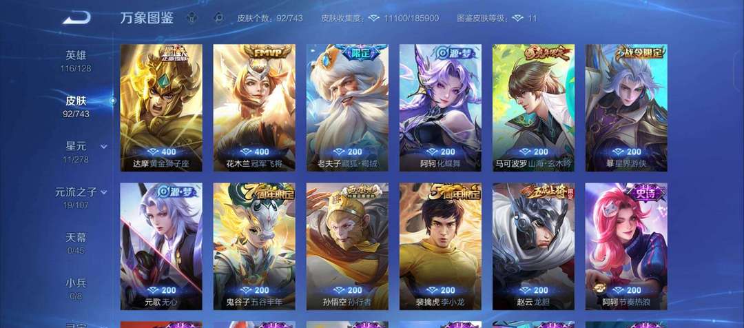 黄金狮子座*冠军飞将*五虎上将龙胆等92个皮肤