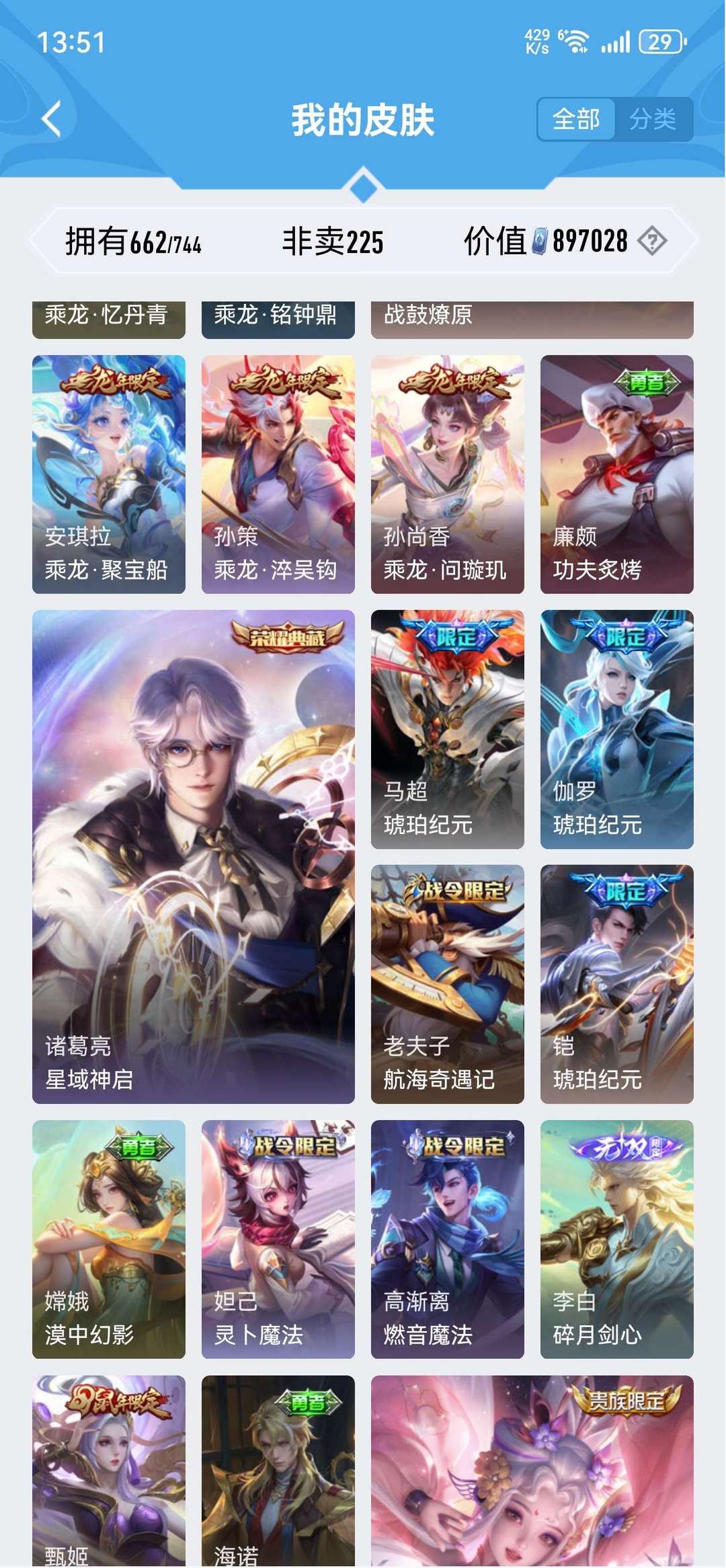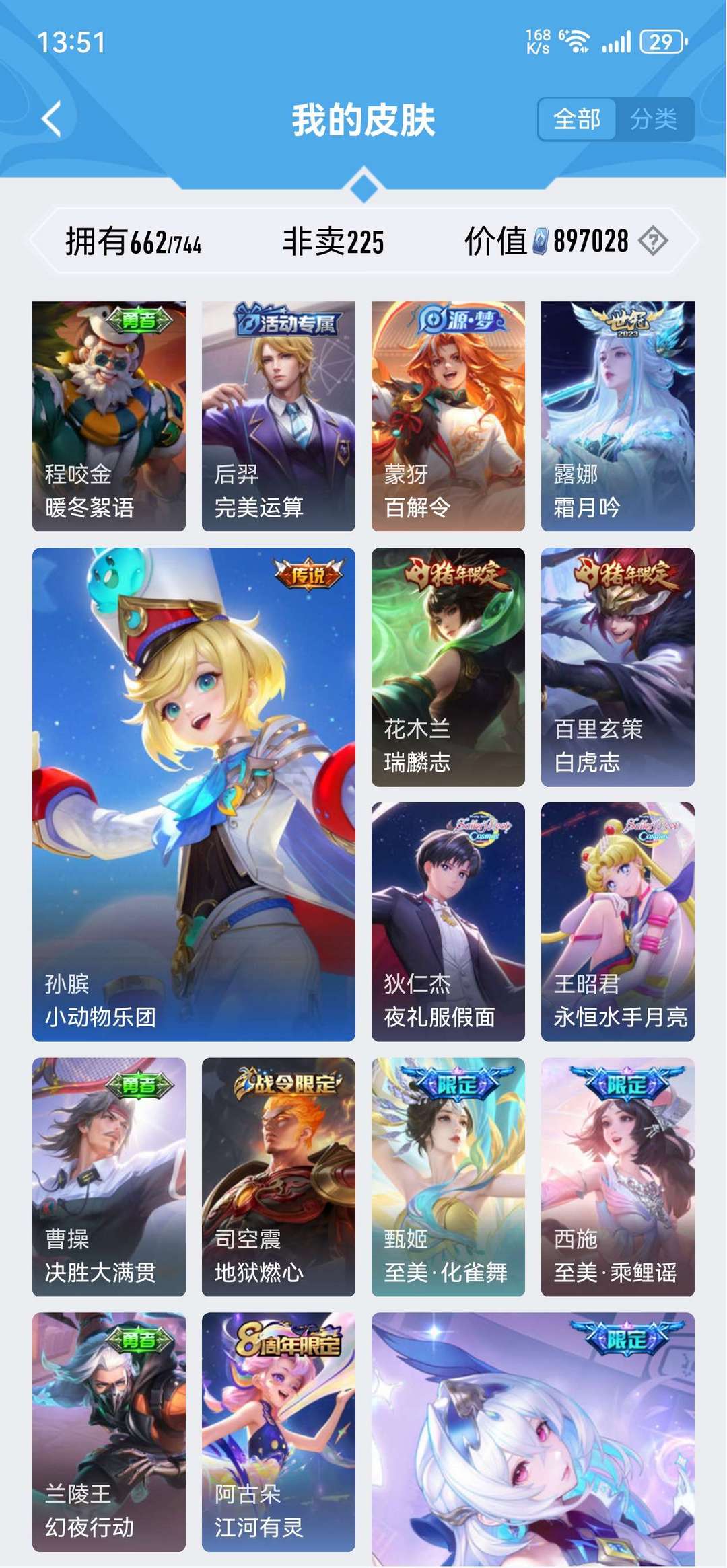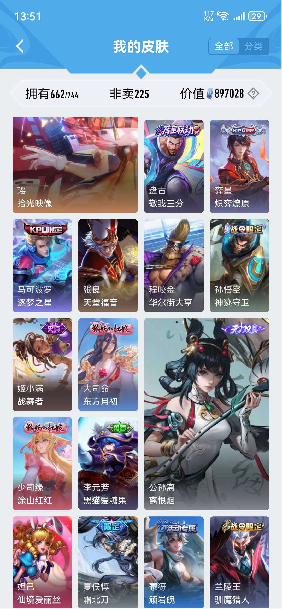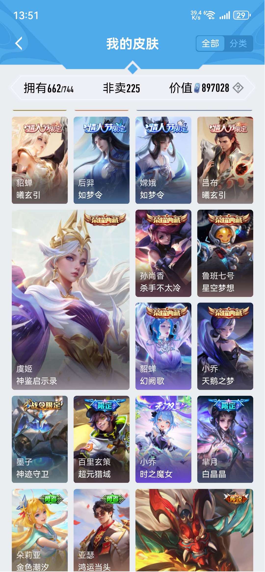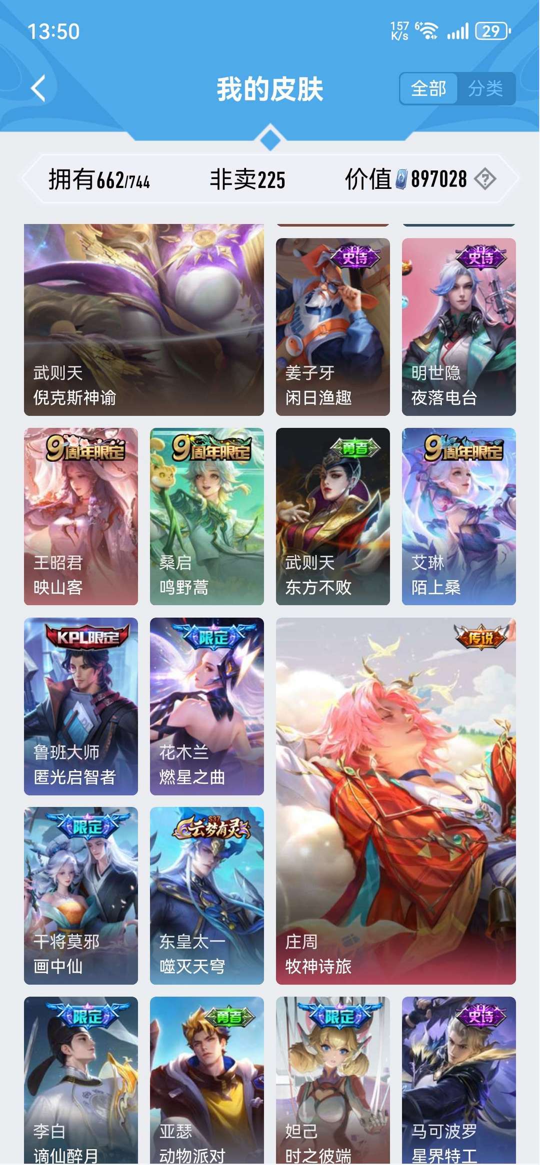 荣耀v10账号,662个皮肤,希望大家玩的开心