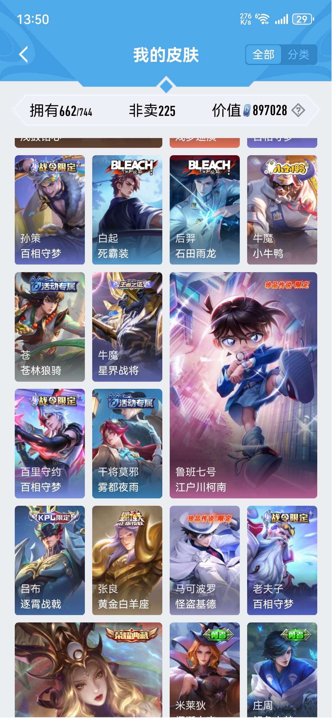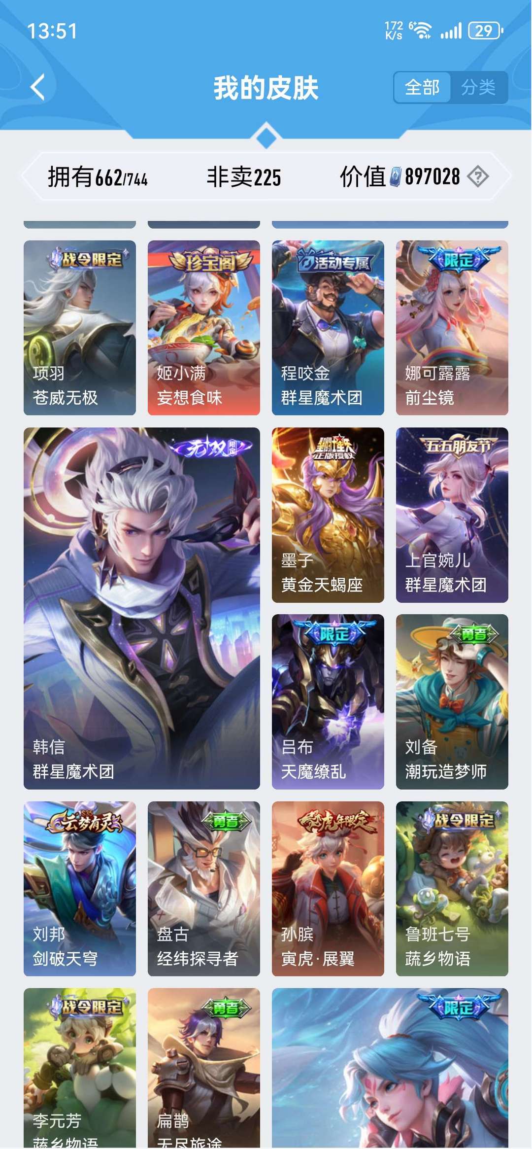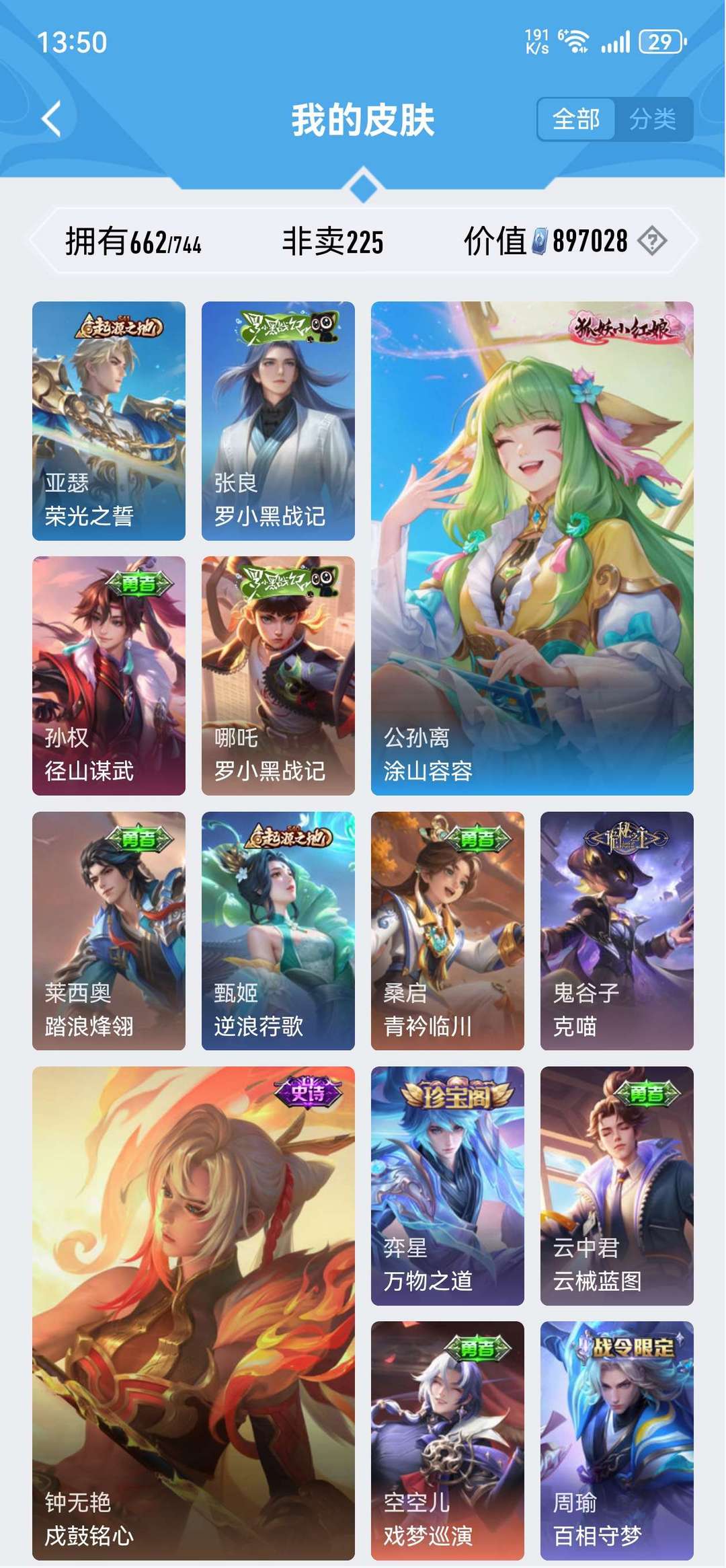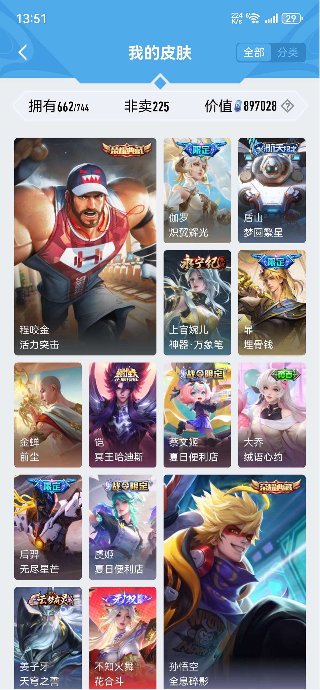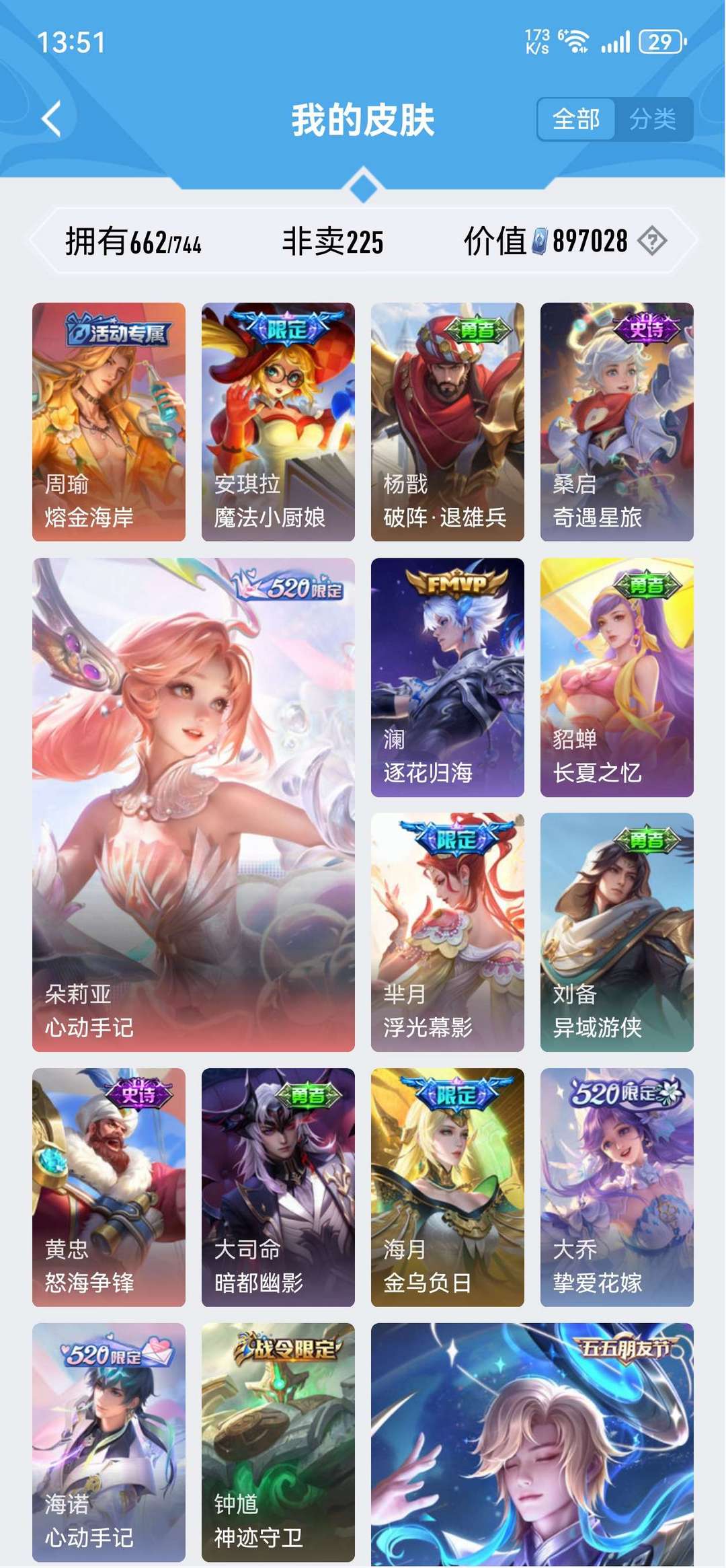 荣耀v10账号,662个皮肤,希望大家玩的开心