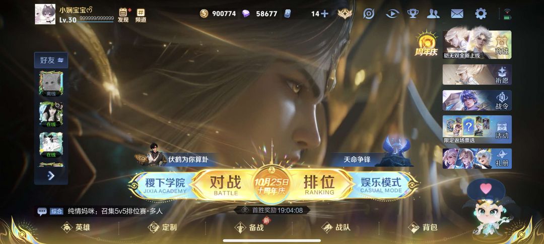 游戏区服:王者荣耀-QQ安卓-QQ账号
