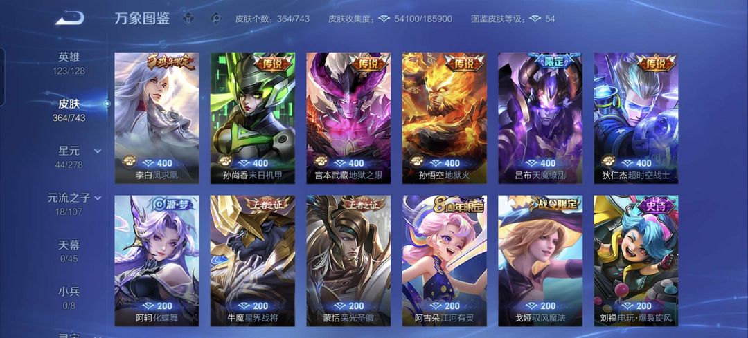 Q,英雄123(可用金币购买其余可购买英雄),主流英雄(打野,上单)皮肤几乎包括,极品号,隐藏分低