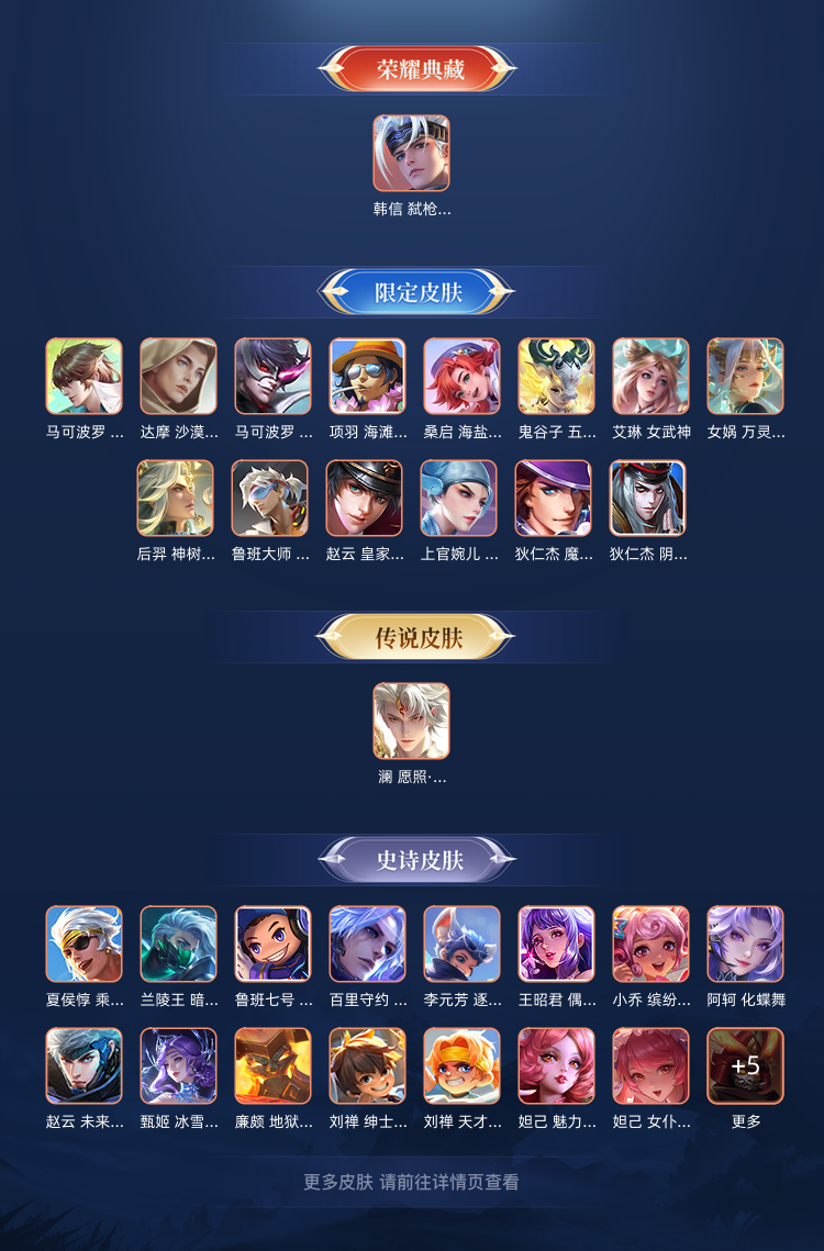 韩信荣耀典藏,耀无双皮,鲁班电玩小子等等