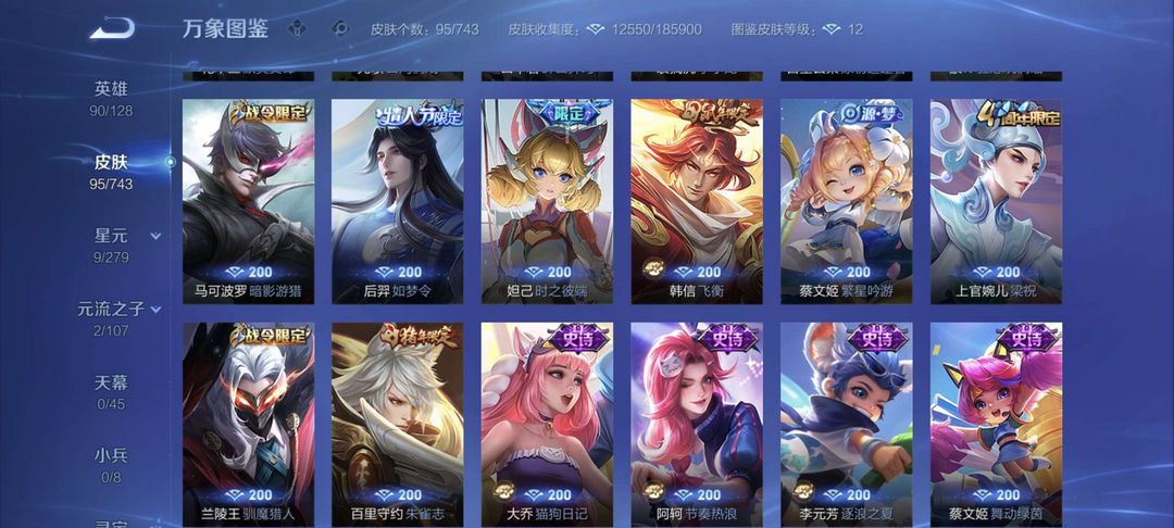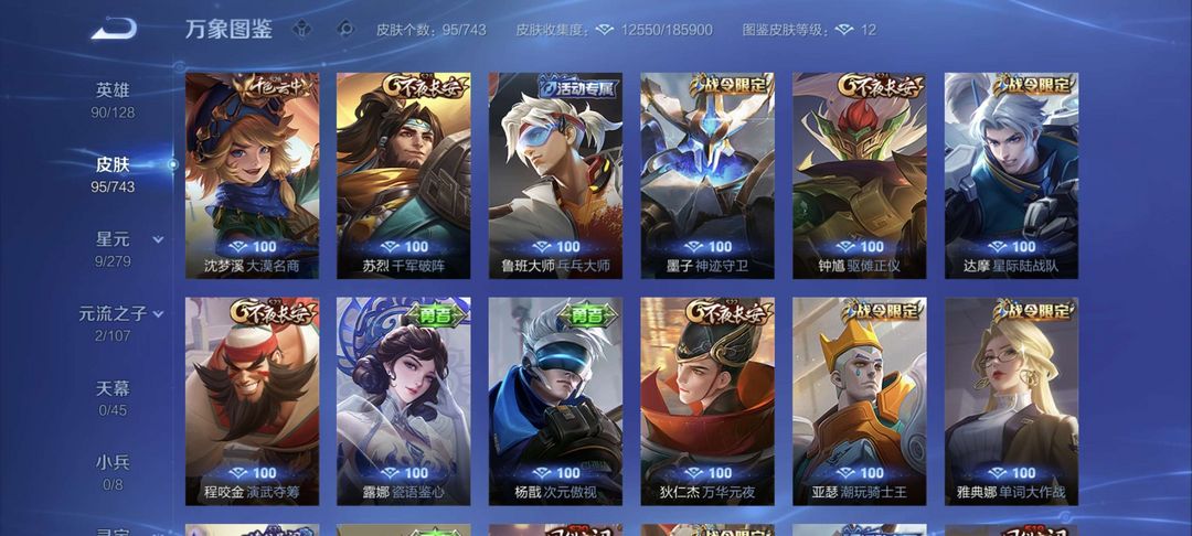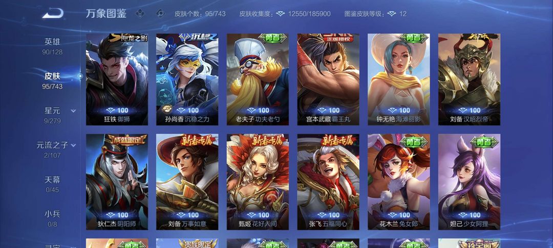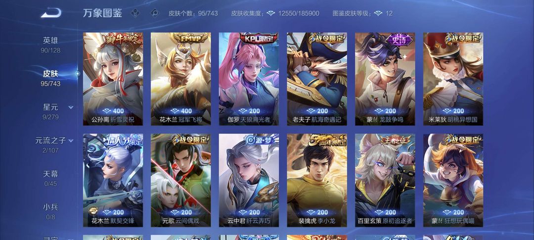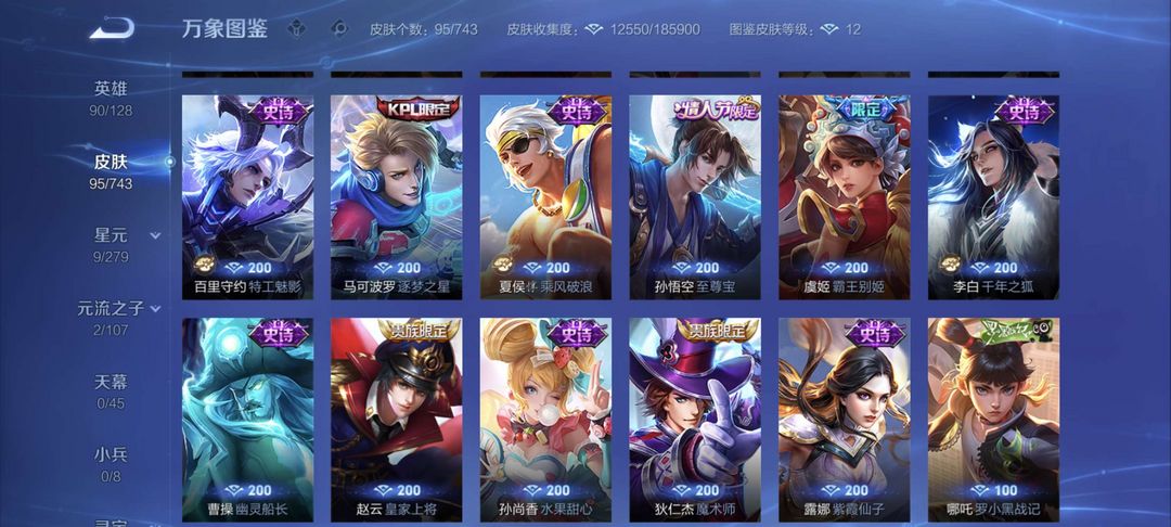 皮肤如图,铭文全满级,英雄大多数都有可以自己买,目前钻石
