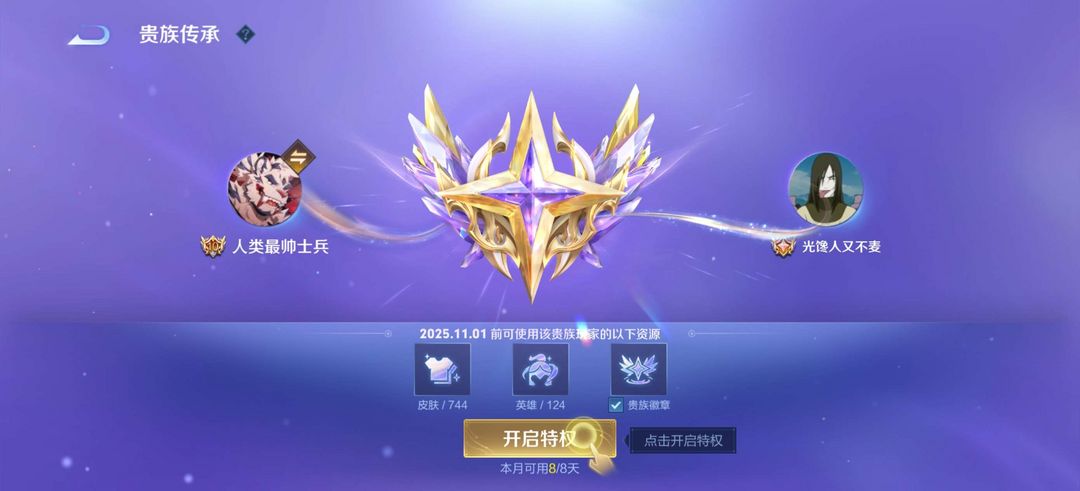 745全皮肤用了传承直接全皮铭文全满,无禁言可排位玩文明游戏勿侮辱骂他人传承8天体验用传承就全皮了!
