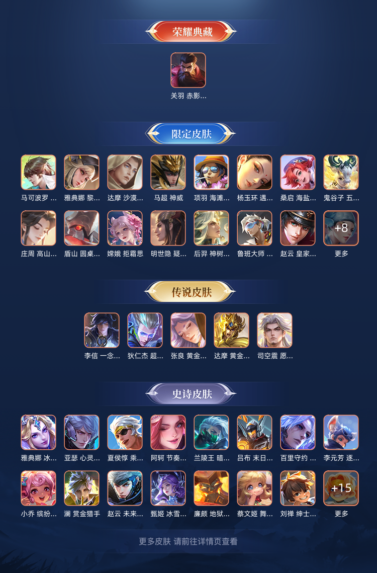限制: 租号20次及以上 |装备描述:英雄除武则天都有,皮肤250多,可打排位