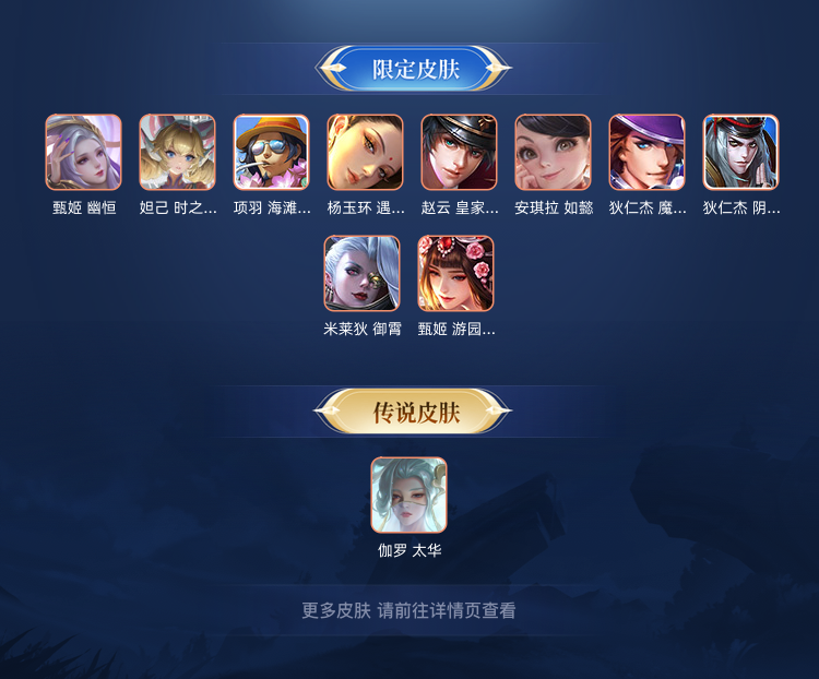 带人号伽罗太华 妲己时之彼端 甄姬皮肤多 各种皮肤