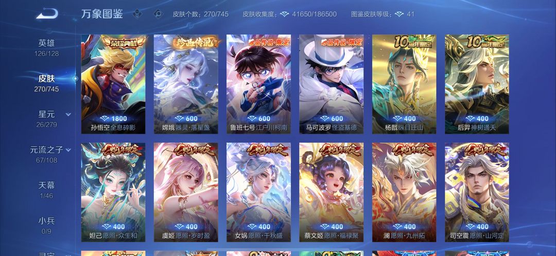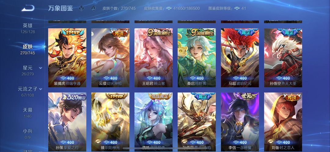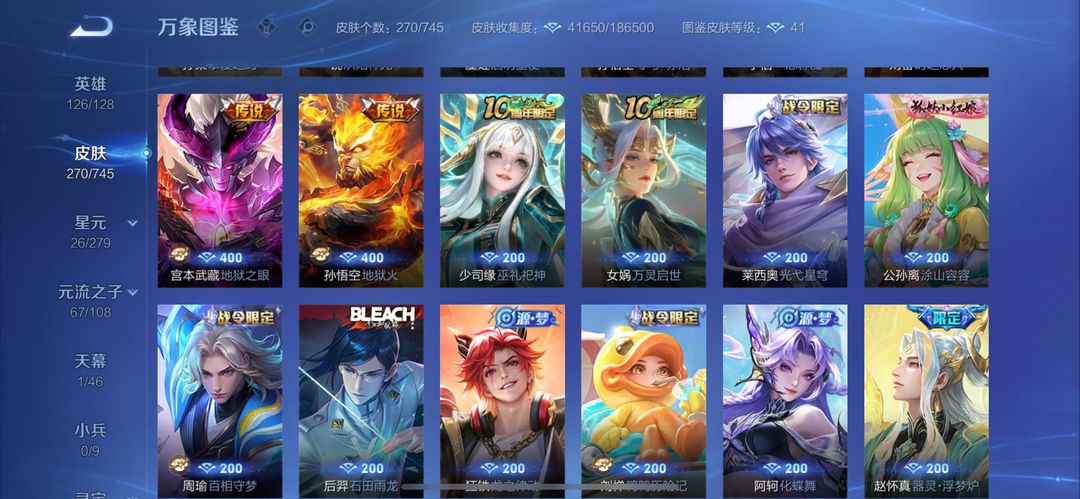 王者段位铭文全满蛇限全有猴子全皮270个皮肤