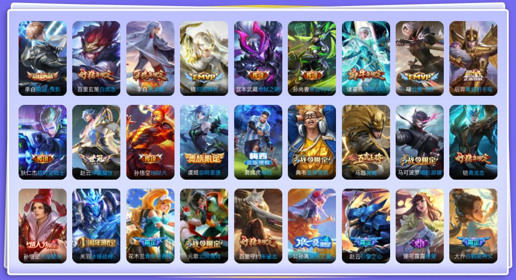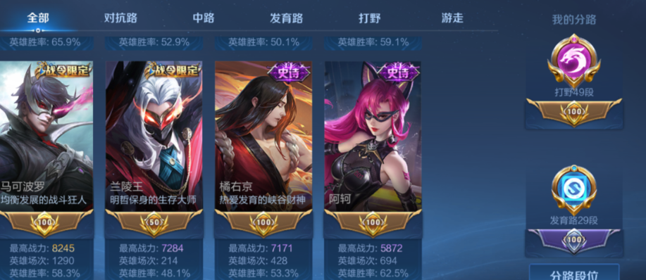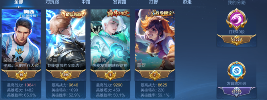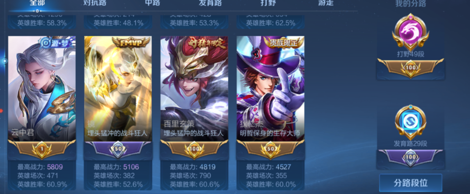 打野49段省标云中君省标蒙犽省标诸葛亮省标裴擒虎省标宫本武藏省标李白省标狄仁杰省标兰陵王省标马可波罗