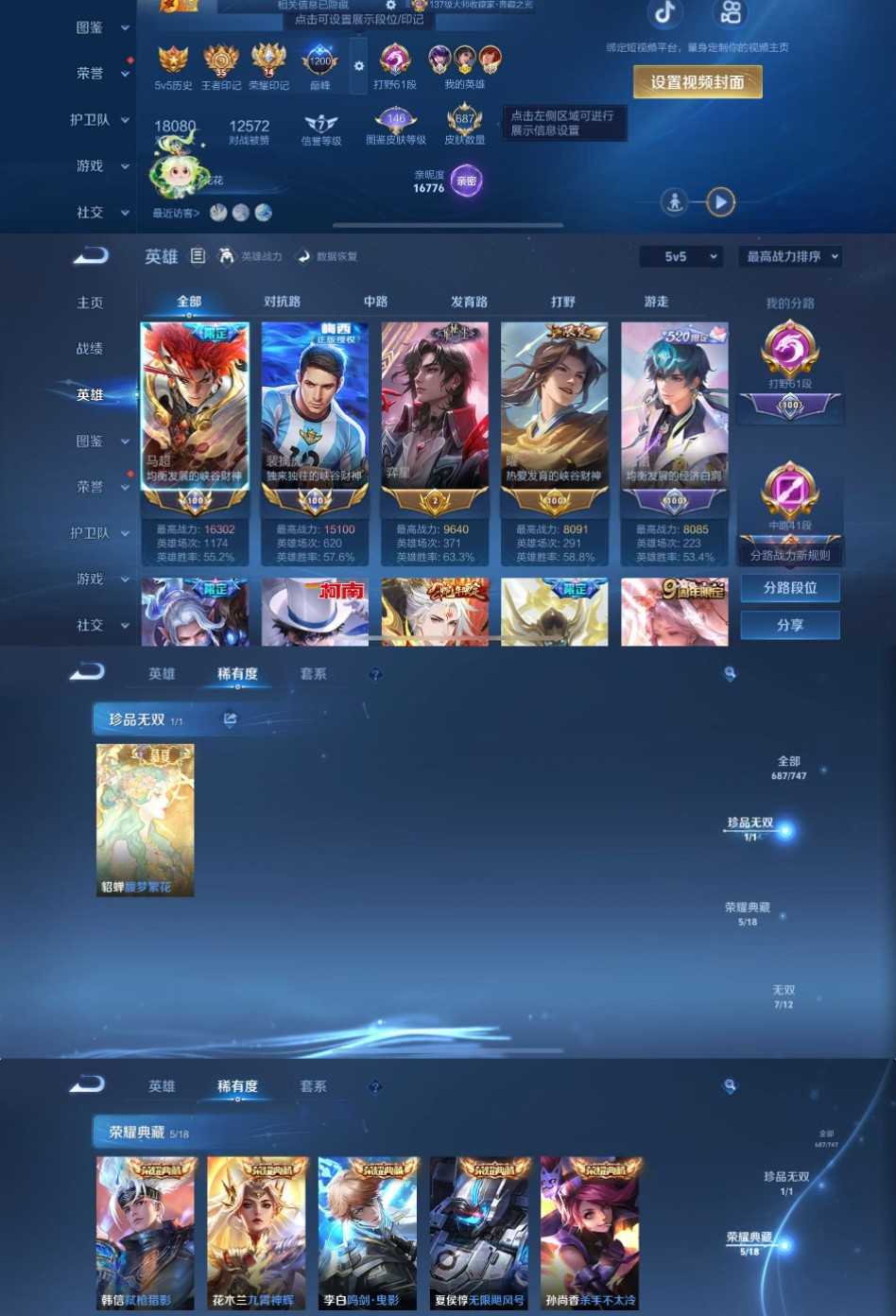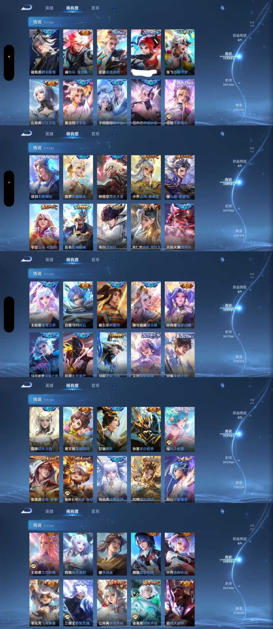 限制: 租号2次及以上 | 撤单率<49%才可租用此帐号装备描述:时间到了还登录白玩或者顶号全部改密拉黑处理永不解除,顶号机器会秒禁玩改密,顶号不仅拉黑还没得玩,赚三两块不容易,请理解谢谢。 ❤❤❤❤❤❤❤❤❤❤❤❤❤❤❤❤❤❤❤ 请勿开挂,挂机,送头,骂人,撤单后游戏等如有违规永久拉黑永不解除。 重置二级密码不要费劲了,号主每天都会上号查看,多行不义必自毙,人在做天在看,多做好事多自律,少做缺德事。 该号英雄128个皮肤687个,珍品无双1个,典藏6个,无双7个,珍品传说8个,星传说6个,传说117个,史诗247个,祝您游戏愉快~