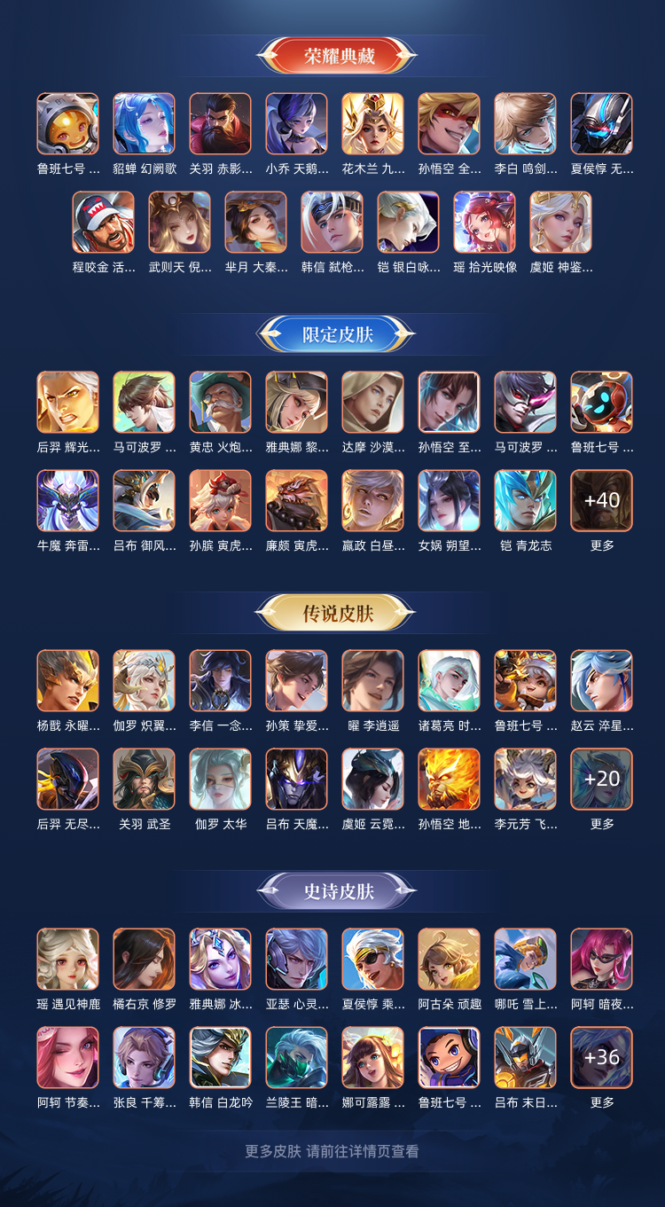 装备描述:15典藏551皮肤V10,李信无双,伽罗沧流箭,狄仁杰马年限定,诸葛亮无双,曜无双,甄姬无双,蛇年全套,龙年全套,暃朽木白哉,器灵.落星盏,孙策时之奇旅,江户川柯南,怪盗基德,小乔无双,公孙离无双,不知火舞无双,李白无双,韩信无双,青丘九尾,朵莉亚海诺520,黄金天蝎座,九山相柳,岁雨灵司,千劫归真,玄雷天君,金乌负日,貂蝉典藏,瑶典藏,虞姬典藏,关羽典藏,韩信典藏,李白典藏,花木兰典藏,凯典藏,武则天典藏,夏侯惇典藏,小乔典藏,程咬金典藏,鲁班典藏,孙悟空典藏,芈月典藏,吕布貂蝉曦玄引,战鼓燎原,落雪白狼,寅虎焰心,寅虎赤拳,齐天大圣,诗剑行,马超琥珀纪元,遇见神鼓,神器陛犴令,惊梅引,霜月吟,妄想实况,太华,炽翼辉光,炽阳神光,永耀之星,辉光之辰,至尊宝,鹤羽星尊,天魔缭乱,灼幽烈阳,浮生妄,张飞百相守梦,亚瑟安琪拉追逃游戏,兰陵王花木兰默契交锋,云缨赵怀真七夕限定,电玩雷克斯,无双飞将,云鹰飞将,怒海麟威,武圣,李逍遥,孙策挚爱之约,后羿无尽星芒,淬星耀世,云霓雀翎,音你心动,飞莺探春,游龙清影,乞巧织情,久胜战神,一念神魔,幽冥之眼,金色仲夏夜,未来机甲,星际治安官,时之思念