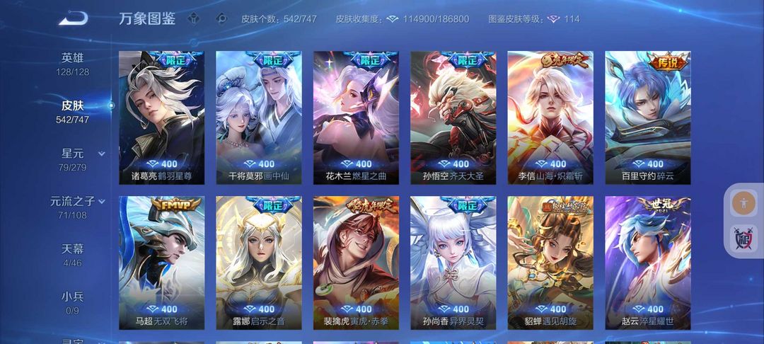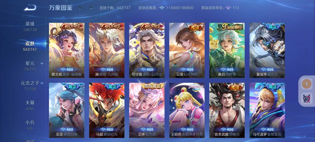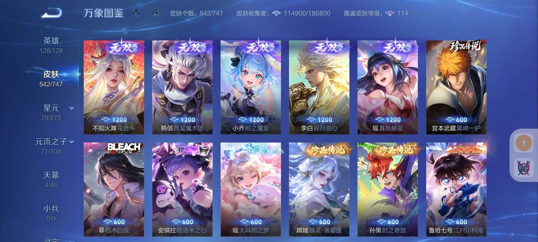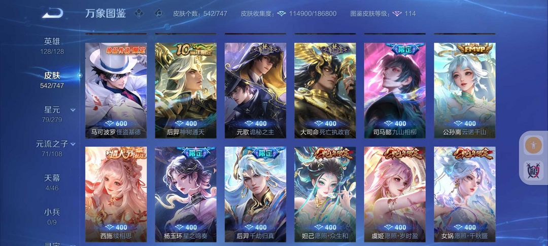 无双V10号542皮肤貂蝉慕夏珍品❤️8水晶❤9无双8珍品❤️诡秘之主❤️天机白泽❤️满蛇年❤️